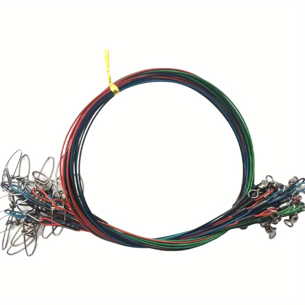 Imagine confidently catching your next big fish with this set of 20 high-quality saltwater leader wires. Designed for durability and strength, each 50 cm wire is crafted from high-carbon steel with a nylon coating, offering corrosion, bite, and wear resistance. The striking red, black, green, or blue colors enhance visibility in water, making targeting fish easier. The sleek, shiny stainless steel swivels and high-strength locking snaps ensure secure bait presentation, while the swivel joint at one end displays the bait attractively. The buckle on the other end allows quick attachment to your main line, facilitating efficient setup. These wires are perfect for both saltwater and freshwater environments, providing reliable performance during your fishing adventures.