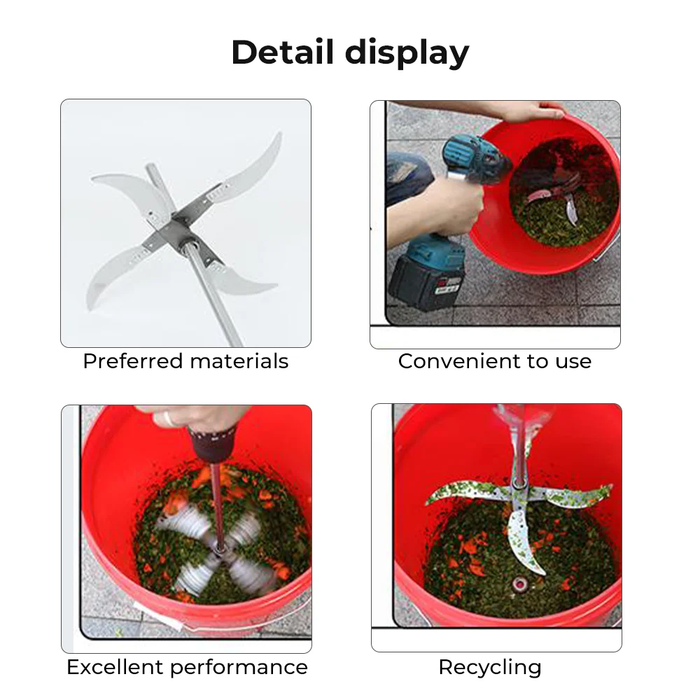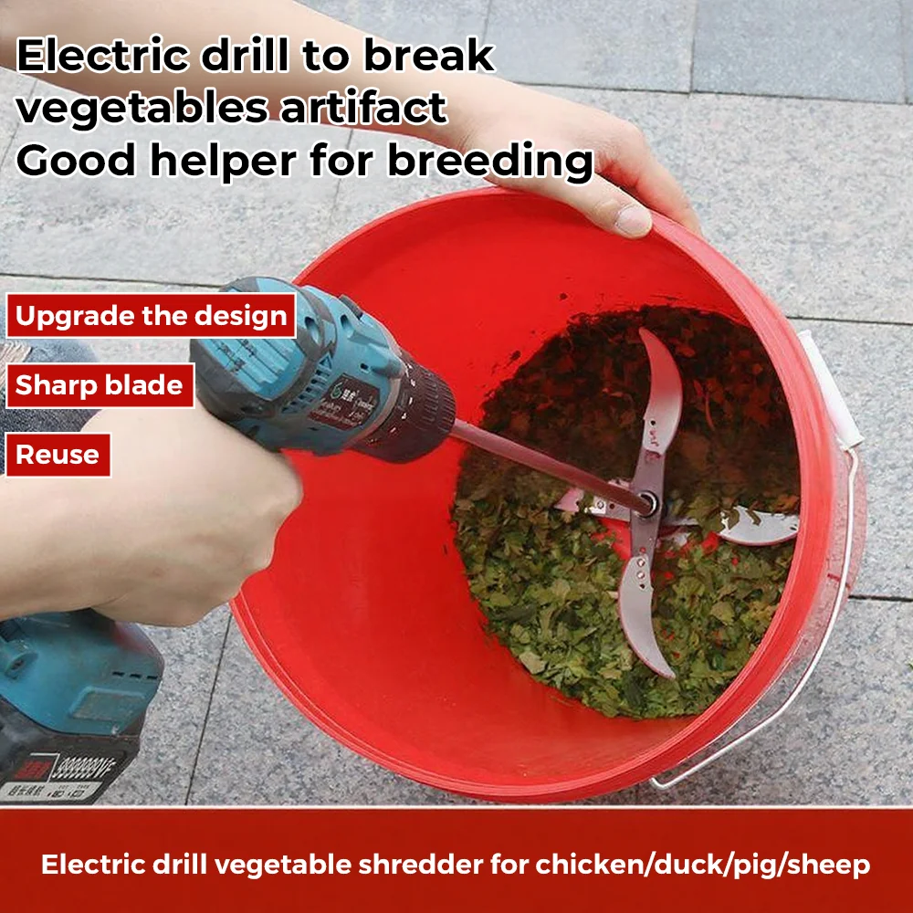Imagine streamlining your farming or gardening tasks with this robust vegetable and fruit crusher attachment. Designed for heavy-duty use, it features four ultra-sharp, curved blades made from durable stainless steel and alloy steel, ensuring quick and precise cutting across various materials. Whether you're chopping vegetables, cutting grass, or preparing feed for poultry and livestock, this attachment makes your work easier. Its polished, sleek blades not only enhance durability but also add a professional touch to your equipment. Easy to attach to your electric drill, it provides a practical solution for both small and large-scale farming needs. Feel confident in your ability to cut efficiently and save precious time in your daily chores.