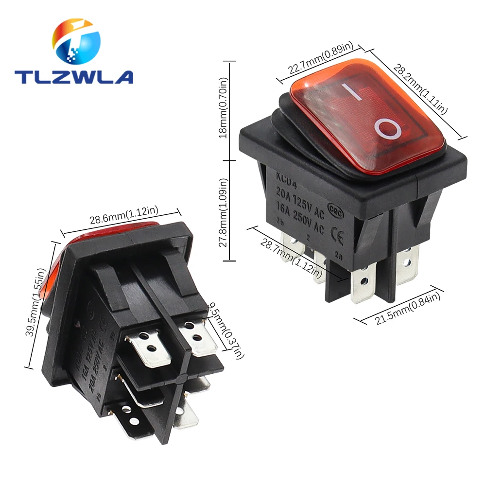 - Available in 4-pin and 6-pin models, compatible with various wiring setups, supporting ON-OFF or ON-OFF-ON functions for versatile control options, rated at 15A, 16A, or 20A at 250V.