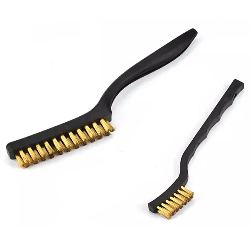 Experience the power of this durable wire brush set, perfect for tackling rust, paint, and debris on various surfaces. Available in 7-inch and 9-inch sizes, with brushes crafted from high-quality steel, brass, and nylon bristles, this set offers versatile solutions for industrial, household, or restoration projects. The ergonomic plastic handles ensure a comfortable grip during intensive scrubbing, while the stiff, densely packed bristles deliver maximum abrasion for effective cleaning and surface preparation. Whether you need to remove rust from metal tools, strip paint from surfaces, or clean stainless steel fixtures, these brushes are built to handle tough tasks with ease. Invest in this reliable set for a professional finish on any project requiring heavy-duty cleaning and surface refinement.