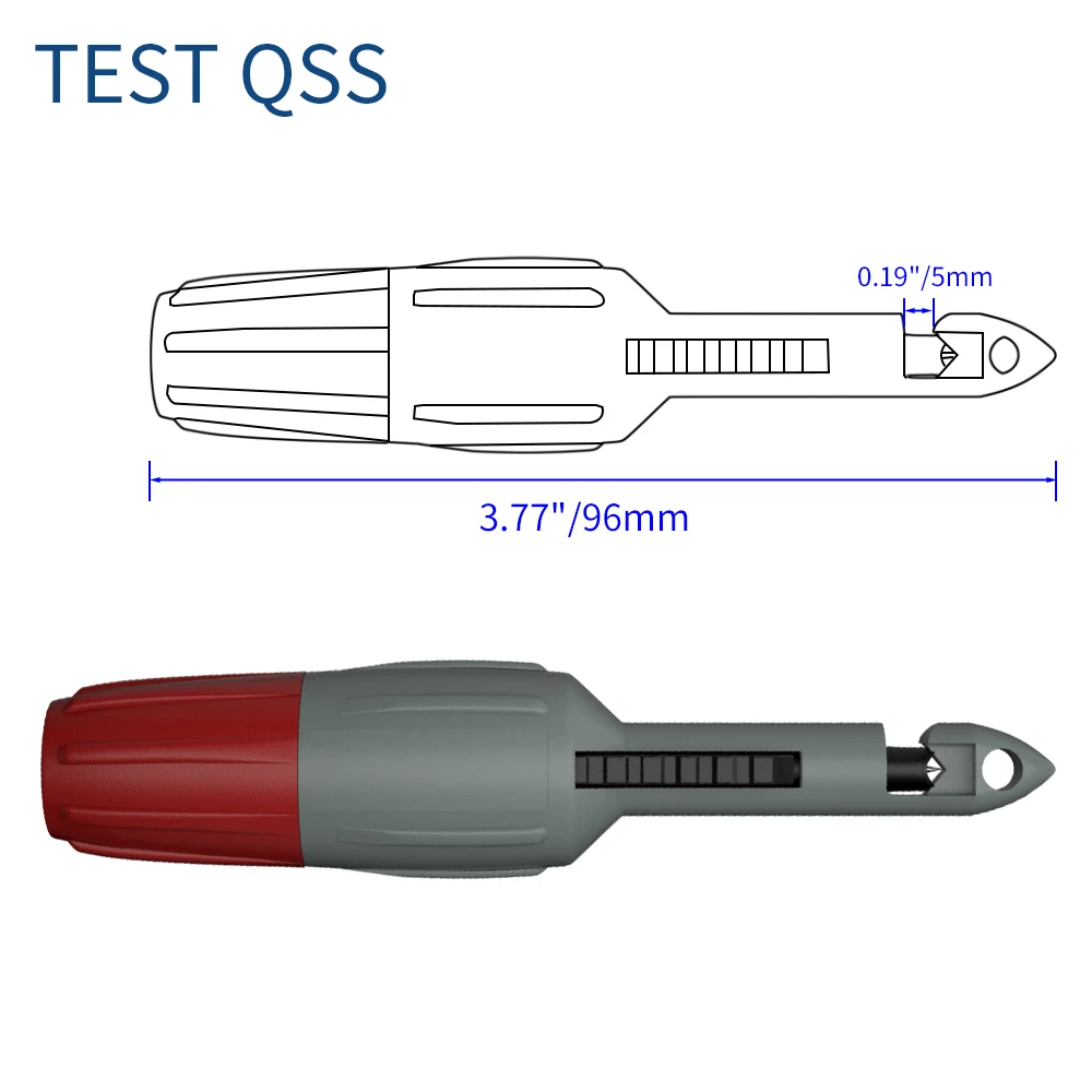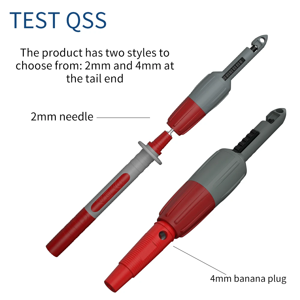 Experience reliable electrical testing with this set of two heavy-duty wire piercing probes, measuring 2mm and 4mm in size. Designed for secure insulation piercing, these clips ensure precise contact for multi-point testing in various electrical applications. Crafted with durable materials, each probe features a sleek, cylindrical light gray body, sharp metallic tips with an angular design for easy piercing into insulated wires, and textured, ergonomic handles for a secure grip. The lower handle sections are color-coded in red and black for quick identification, making them ideal for DIY electrical projects and professional use. Trust these robust probes for accurate, efficient testing across a range of electrical tasks.