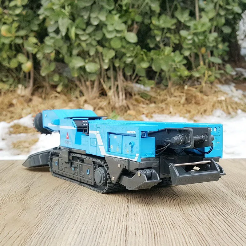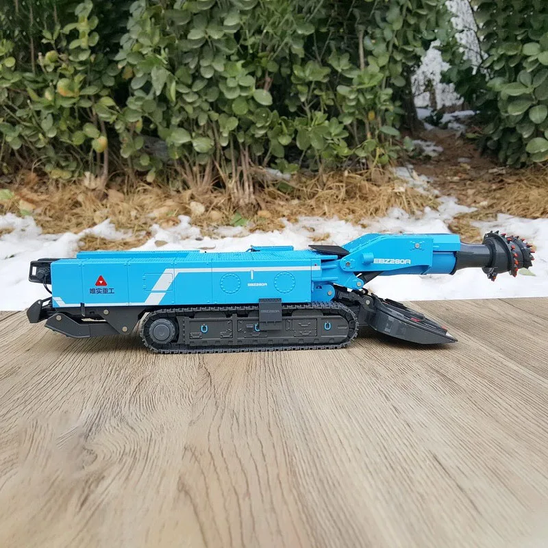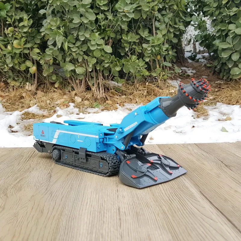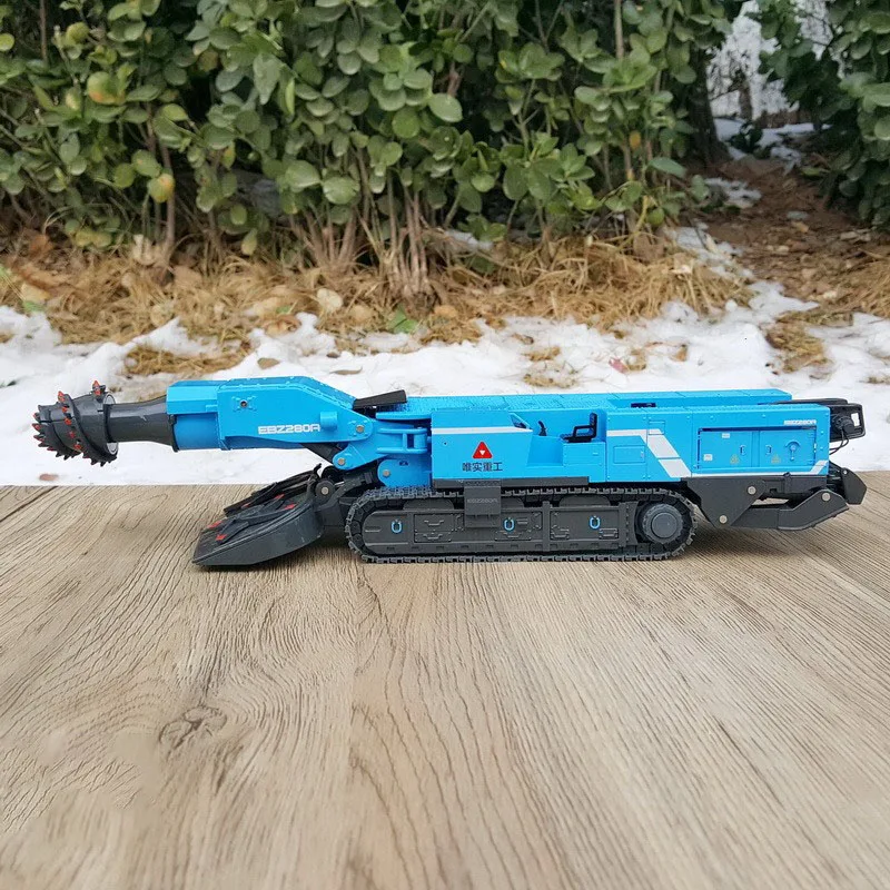 Immerse yourself in the industrial world with this highly detailed diecast alloy model of a heavy-duty tunnel boring machine. Measuring approximately 37 cm in length, 11 cm in width, and 7.7 cm in height, this 1:35 scale replica captures the essence of real tunneling equipment. Crafted from durable alloy and ABS plastic, it features a vivid bright blue body accented with black components, capturing a striking, rugged appearance. The black, elongated cylindrical cutting head with red-tipped drill bits highlights its functional design, complemented by articulated blue arms, vents, and panels that add to its realistic industrial aesthetic. Perfect for display, collection, or gifting, this model brings a touch of heavy industry realism to any space.