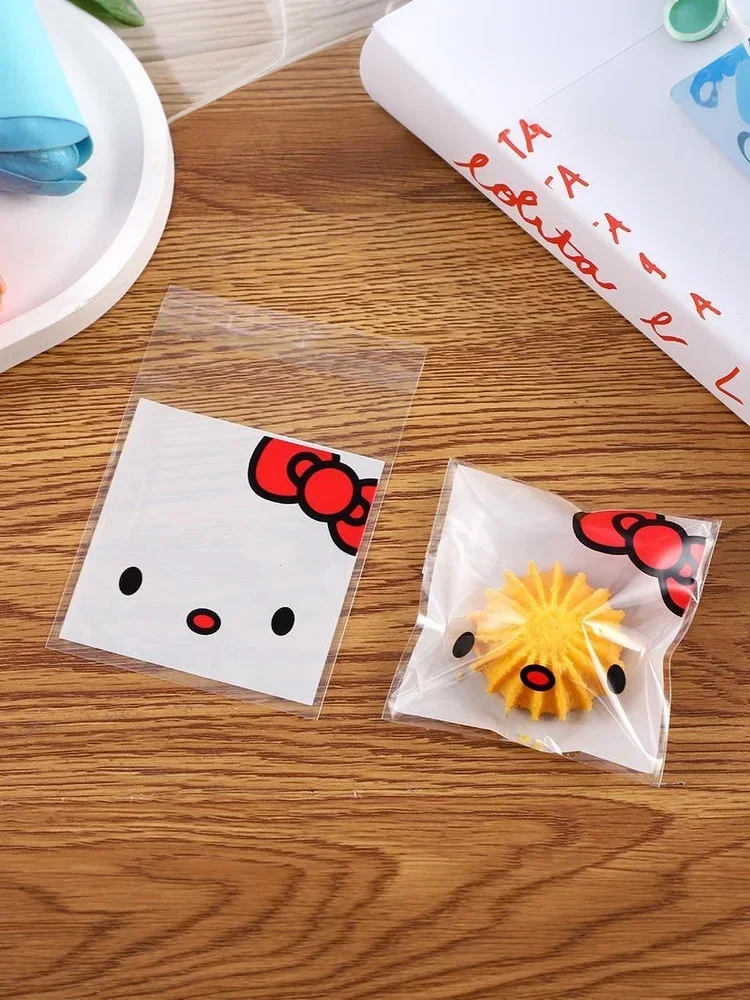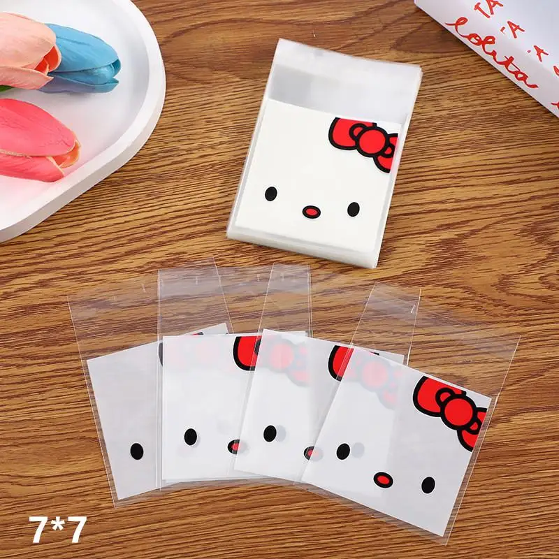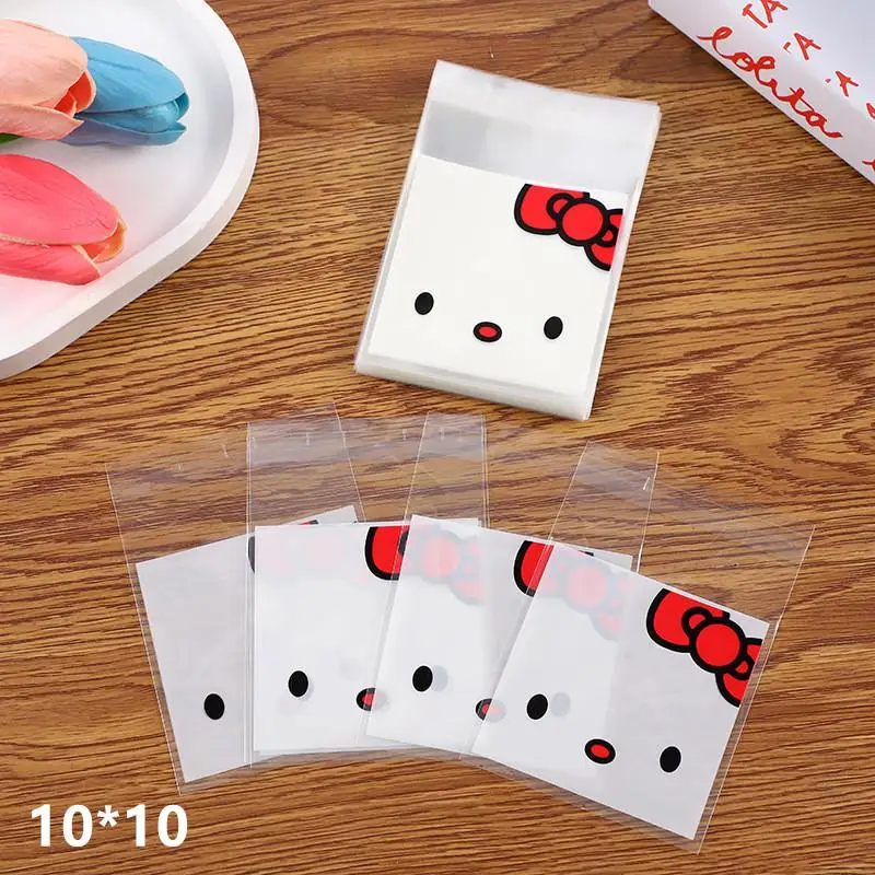 This set of 100 self-sealing PVC storage bags features a cute Hello Kitty print, available in two sizes—7x7cm and 10x10cm—crafted from transparent, glossy material that showcases contents clearly. Designed for disposable storage of candies or small items, these bags combine functionality with a playful, kawaii aesthetic. The seal strips ensure secure closures, making them perfect for organizing, gifting, or decorative purposes. Available in color options labeled ‘L’ and ‘S’, they are unisex, fashion-oriented, and compatible with a variety of uses. Enjoy a charming, practical solution that adds a cheerful touch to your organization and presentation needs.