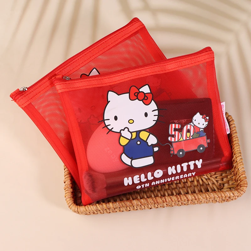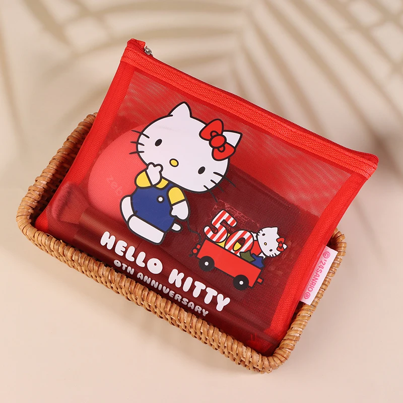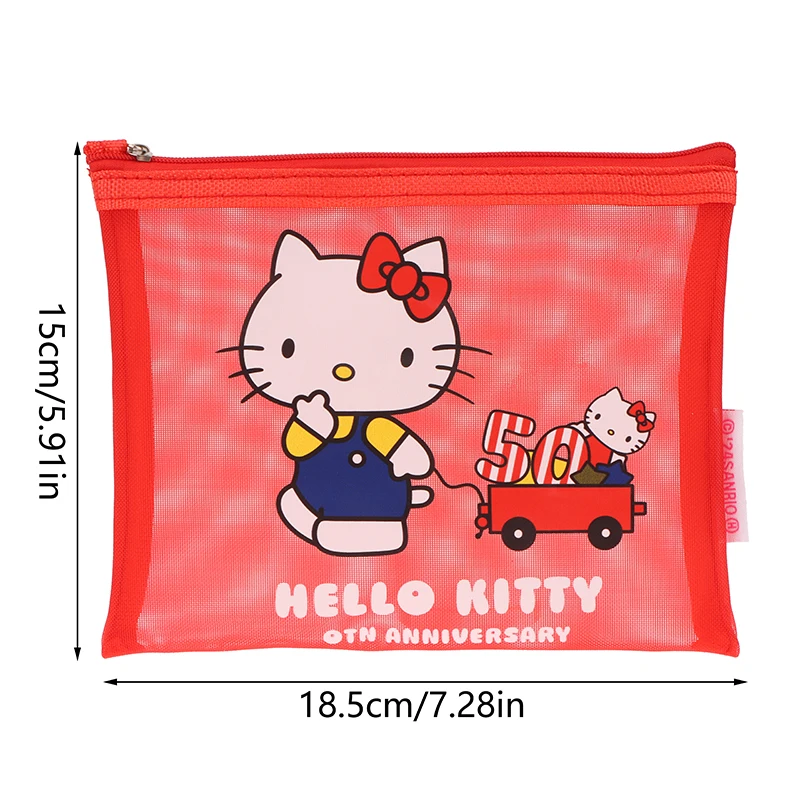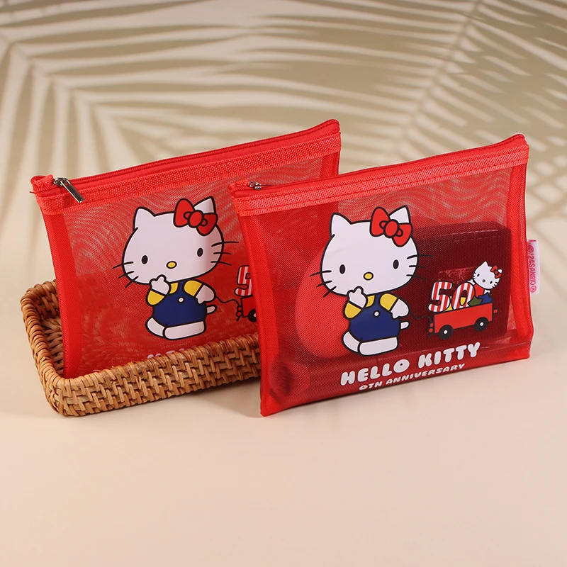 Imagine having your favorite cosmetics and skincare items organized in a playful, vibrant pouch that showcases the adorable Hello Kitty design. Measuring 18.5 cm by 15 cm, this transparent mesh cosmetic bag offers a lightweight and compact solution for everyday use, travel, or special occasions. Its see-through mesh allows you to identify contents instantly, saving you time while on the go. Crafted from durable plastic, it is safe and free from high concern chemicals. The zipper closure ensures your items stay secure. Designed with a cheerful festive theme, this pouch combines practicality with a fun aesthetic, perfect for fans of cute collectibles. Elevate your organization game with this delightful accessory that adds a touch of kawaii magic to your routine.