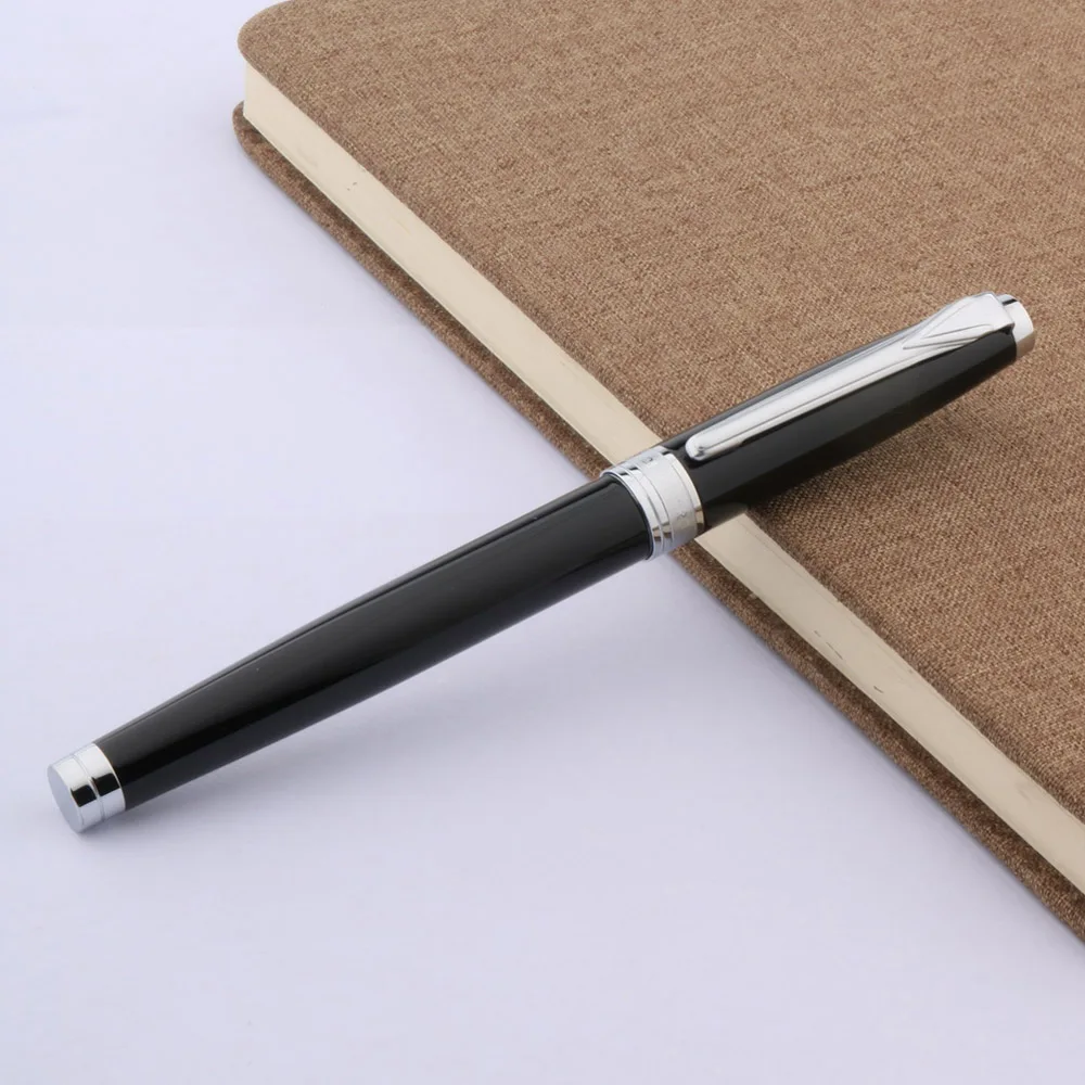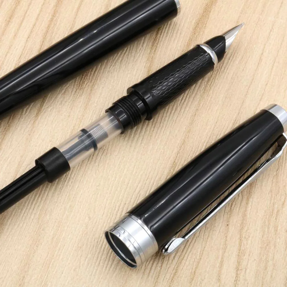 - High-gloss black metal body with stainless steel nib provides durability and a sleek aesthetic for everyday writing needs.