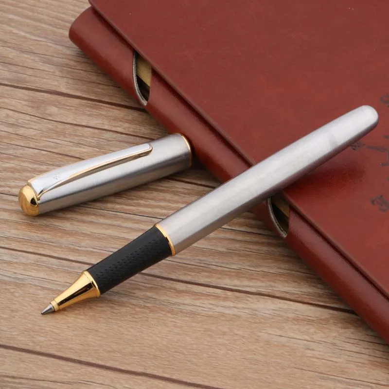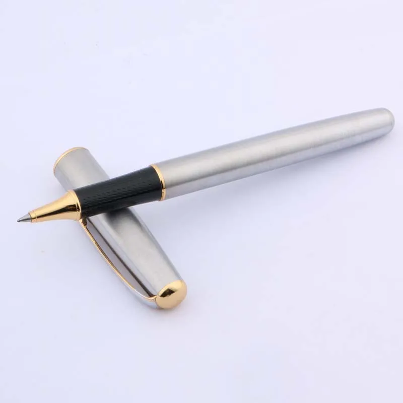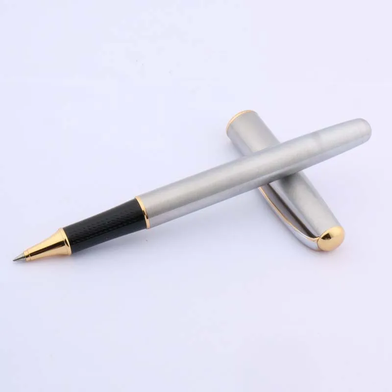 Experience the perfect blend of modern elegance and professional sophistication with this HERO office gift stainless steel and gold-colored rollerball pen. Designed to make a statement, its sleek metallic body features a matte silver finish that exudes luxury. The pen’s smooth cylindrical shape is complemented by a slightly tapered end, offering a comfortable grip for effortless writing. A refined gold-toned clip adds a touch of opulence, contrasting beautifully with the matte silver. The textured black grip near the 0.5mm tip enhances tactile feedback, ensuring precise control in every stroke. Whether used for business or personal notes, this stylish pen is ideal for those who value quality, design, and durability. Its customizable feature makes it a perfect gift to impress and inspire.