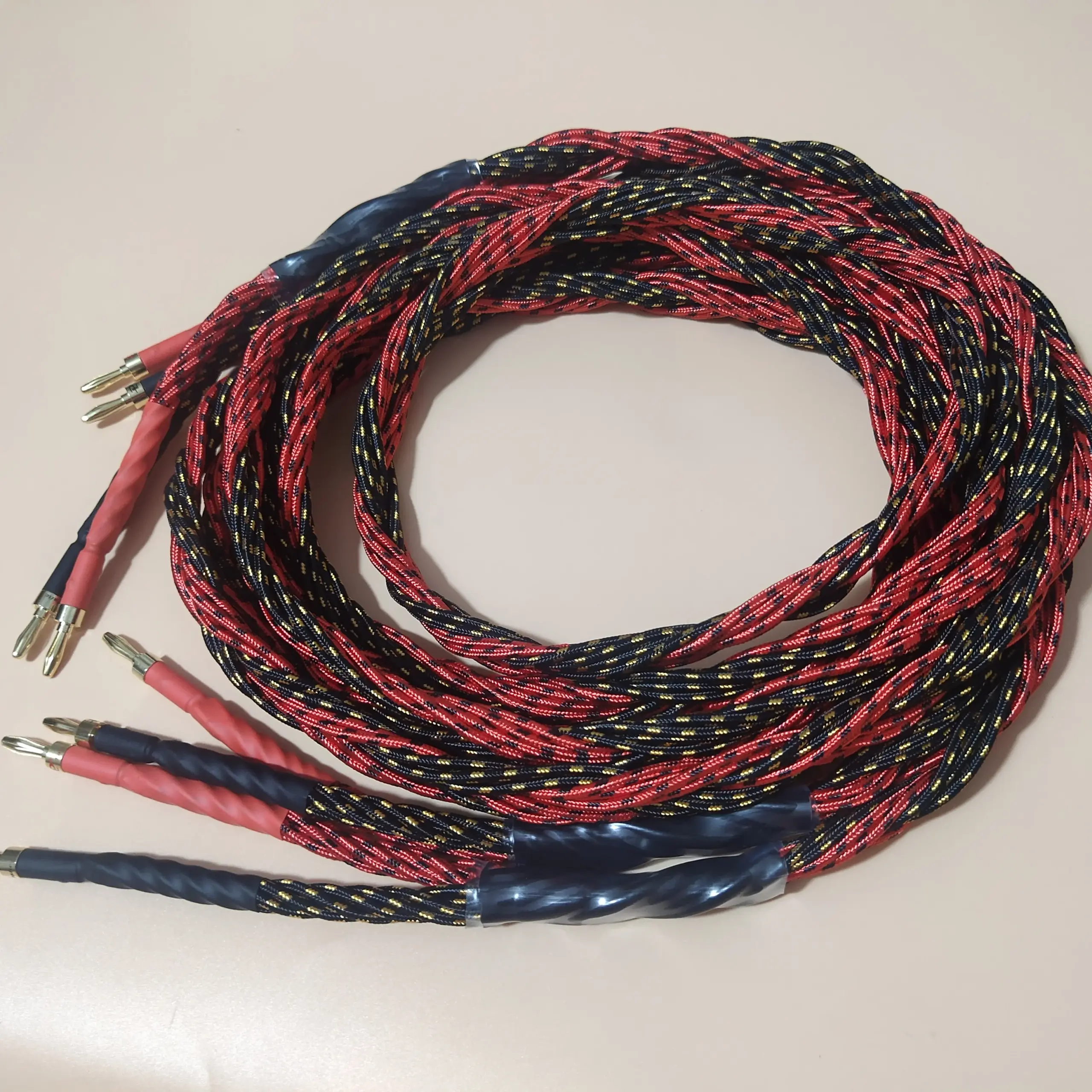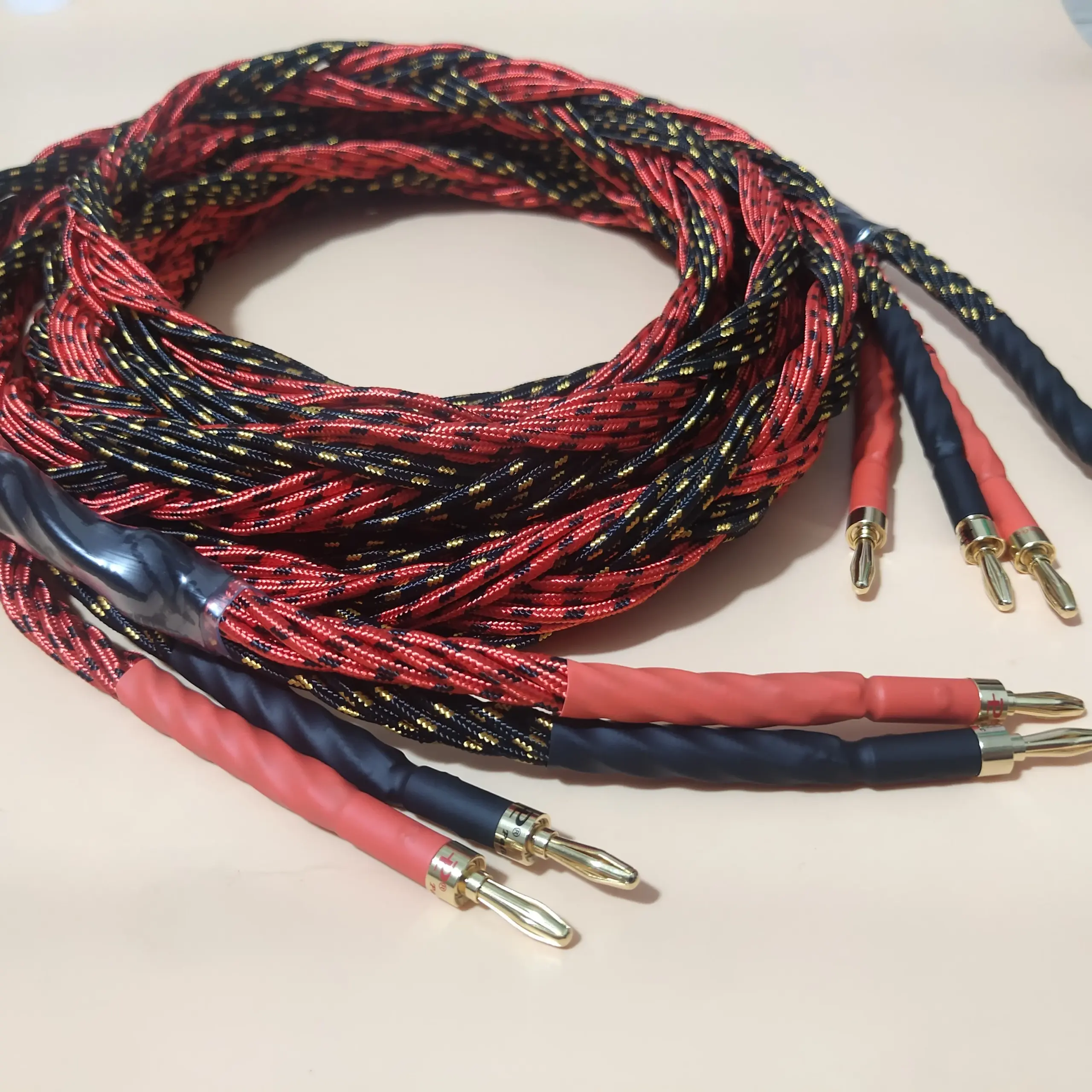 Experience unparalleled audio quality with this HI-End Western Electric Loudspeaker Cable, specifically designed for audiophiles. This cable features a visually striking braided design in red and black, combining multiple strands to ensure optimal signal transfer. The flexible yet durable outer layer enhances both aesthetic appeal and functionality. With gold-plated banana plugs, it promises superior connectivity. Available in customizable lengths from 1.5m to 3m, this speaker cable is perfect for high-performance audio setups. Its 16-core configuration supports loads up to 3500 watts, making it well-suited for both bookshelf and floor speakers, particularly paired with tube amplifiers. Indulge in pure sound quality that captivates.