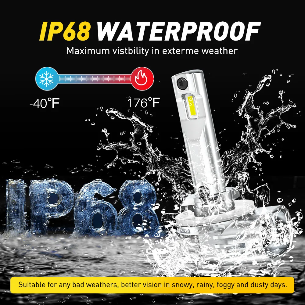 - Features a 6500K white emission with a 360-degree beam angle for optimal visibility under various weather conditions, including fog, heavy rain, or snow.