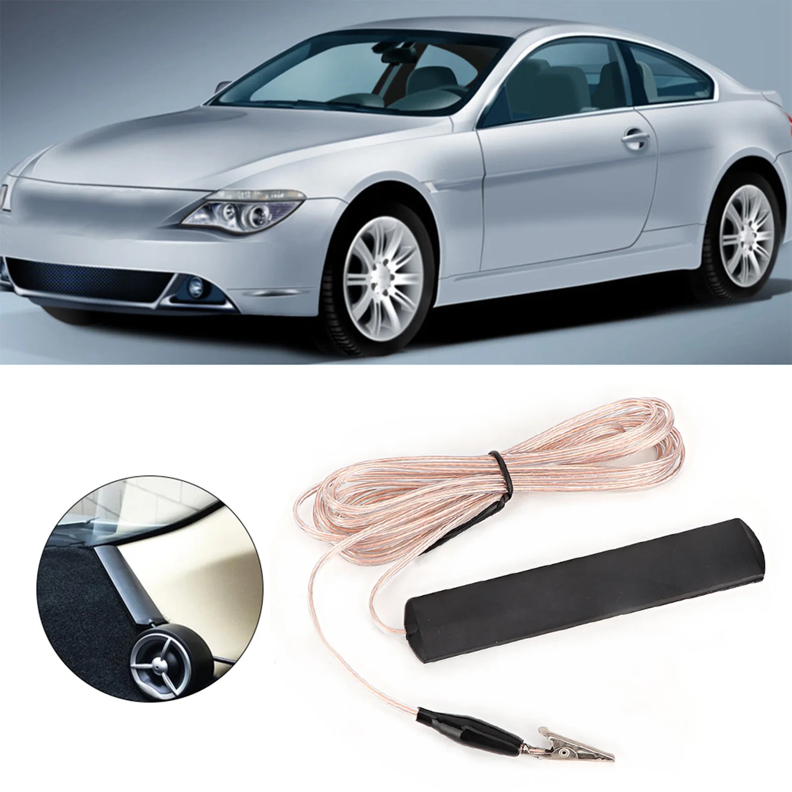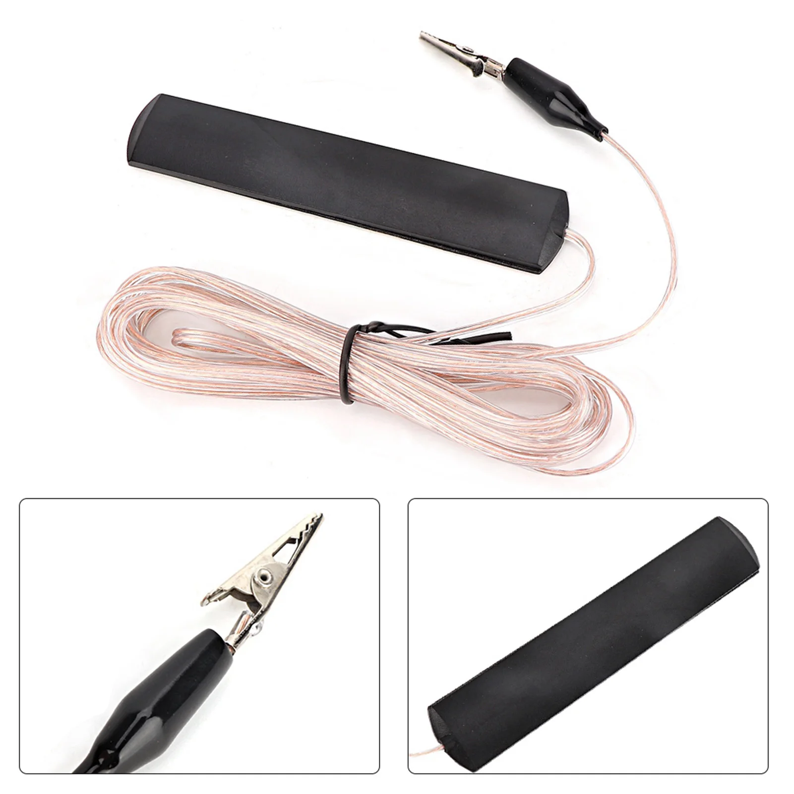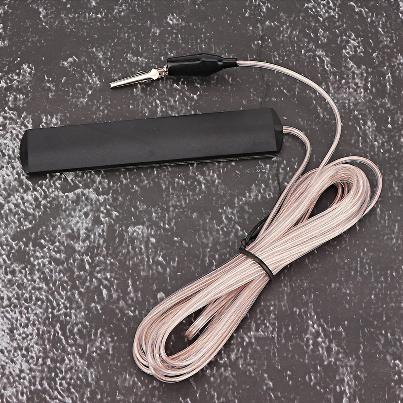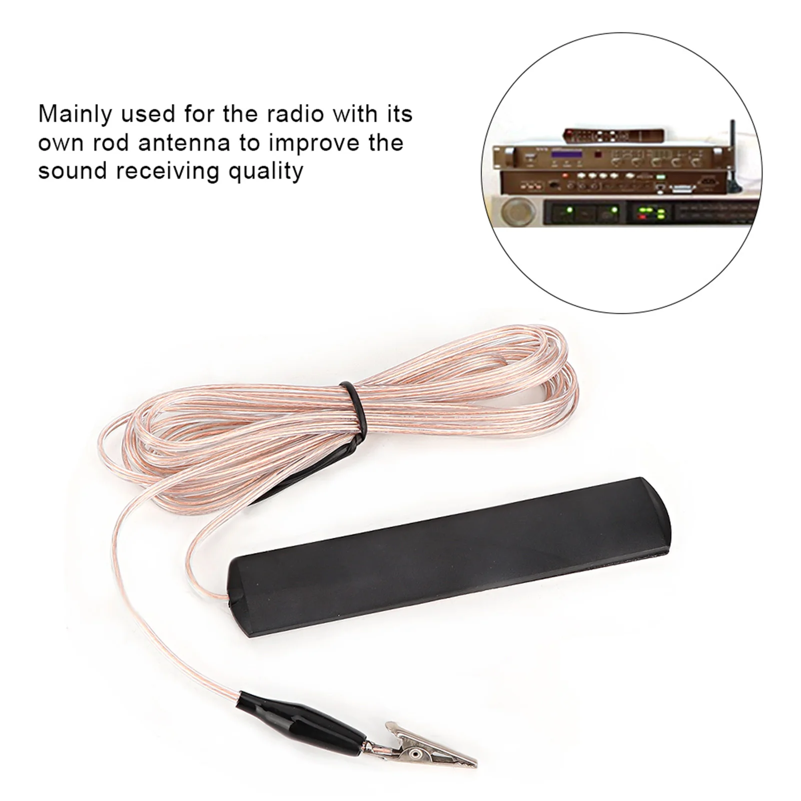 Enhance your indoor radio experience with this 3.2-meter FM radio antenna featuring pure copper double wire for exceptional conductivity and durability. Its sleek, flexible wire is secured with a black elastic band for neatness and ease of handling. Equipped with a clamp connector, it easily attaches to desktop radios, AV amplifiers, and receivers with rod antenna interfaces, providing a gain of 5 dB for improved signal reception. The antenna includes a removable adhesive backing, allowing secure mounting on window glass or smooth surfaces. Designed for high sensitivity and reliability, this antenna offers a sleek, minimalist aesthetic tailored to optimize your home audio setup.