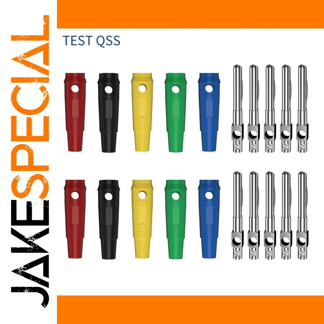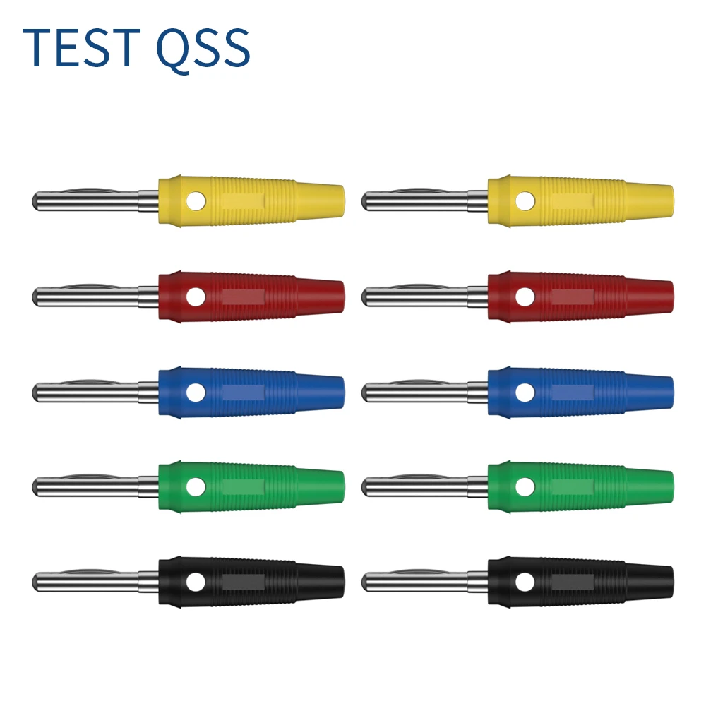 Experience seamless electrical connections with this set of ten high-current copper banana plugs. Crafted from shiny, polished copper, each plug boasts a 4mm diameter and features a textured cylindrical body designed for maximum grip. The vibrant color coding in red, black, yellow, green, and blue helps you clearly identify polarity or wiring, ensuring safe and organized wiring setups. Their insulated, stackable, and solderless design makes installation straightforward, even in complex systems. These plugs are ideal for high-current applications, providing reliable performance and secure connections. The sleek aesthetic combines vibrant colors with a modern metallic finish, offering both functionality and visual appeal for your electrical projects.