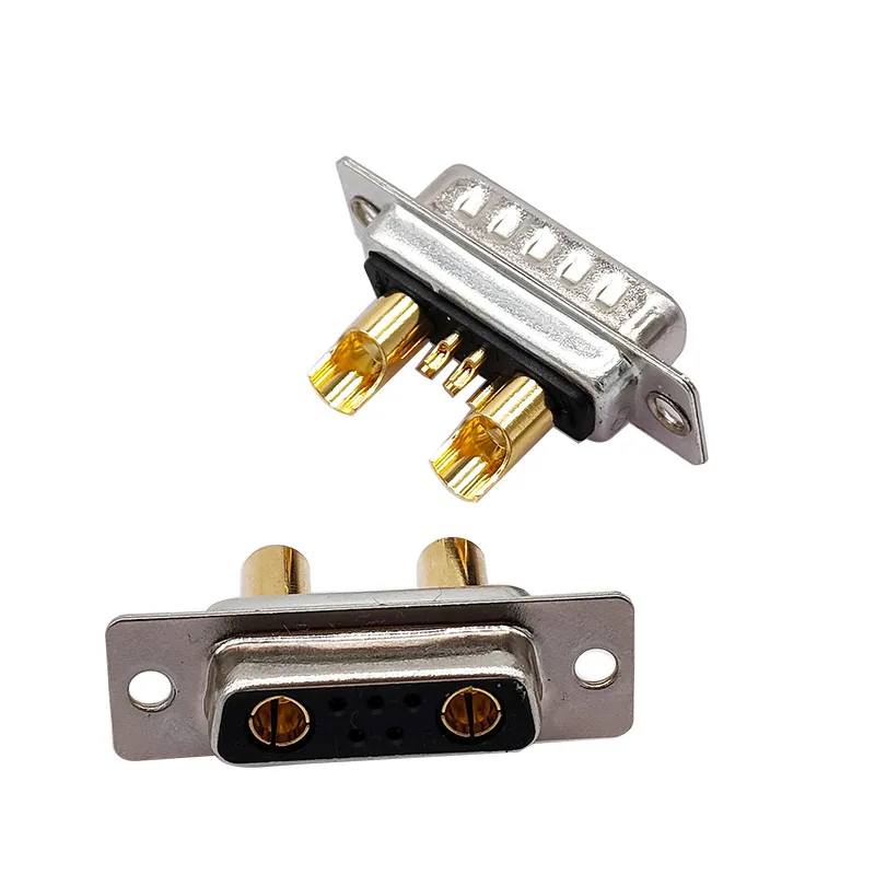 Experience durability and high-performance electrical connections with this set of 10 high-current D-SUB connectors. Designed for electronic enthusiasts and professionals, these connectors boast full gold flash plating on machined pins for optimal conductivity and corrosion resistance. Featuring robust metallic shells and precision mounting flanges with screw holes, they provide secure and reliable attachment in high-current applications. Available in multiple configurations—including 20A, 30A, and 40A ratings—they support voltages up to 24V, making them ideal for demanding electrical setups. Their sleek, industrial aesthetic combines metallic finishes and black insulators, reflecting strength and technical sophistication. Trust this product to elevate your electrical projects with superior design and reliable performance, ensuring long-lasting connections that withstand high current loads.
