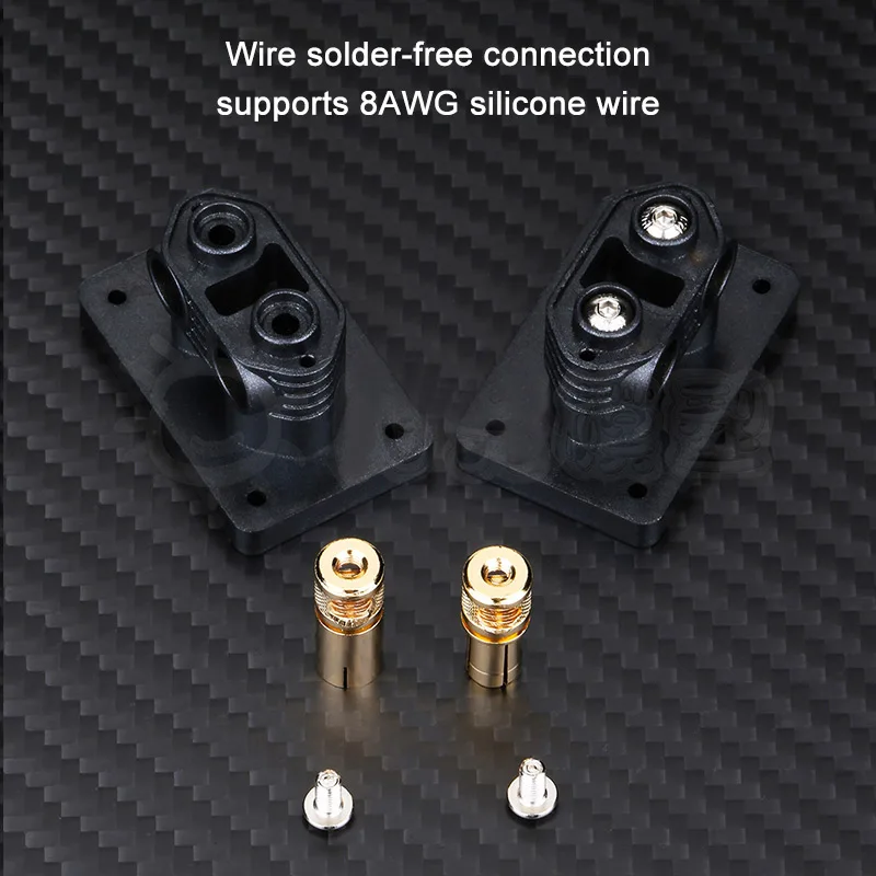- This connector supports a 240A current capacity with a solder-free onboard plug for quick, secure connections, suitable for high-power lithium battery applications and professional electronic setups.