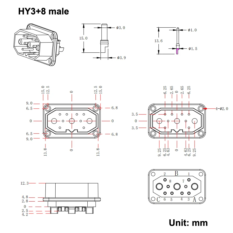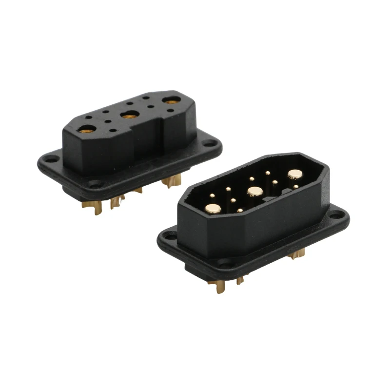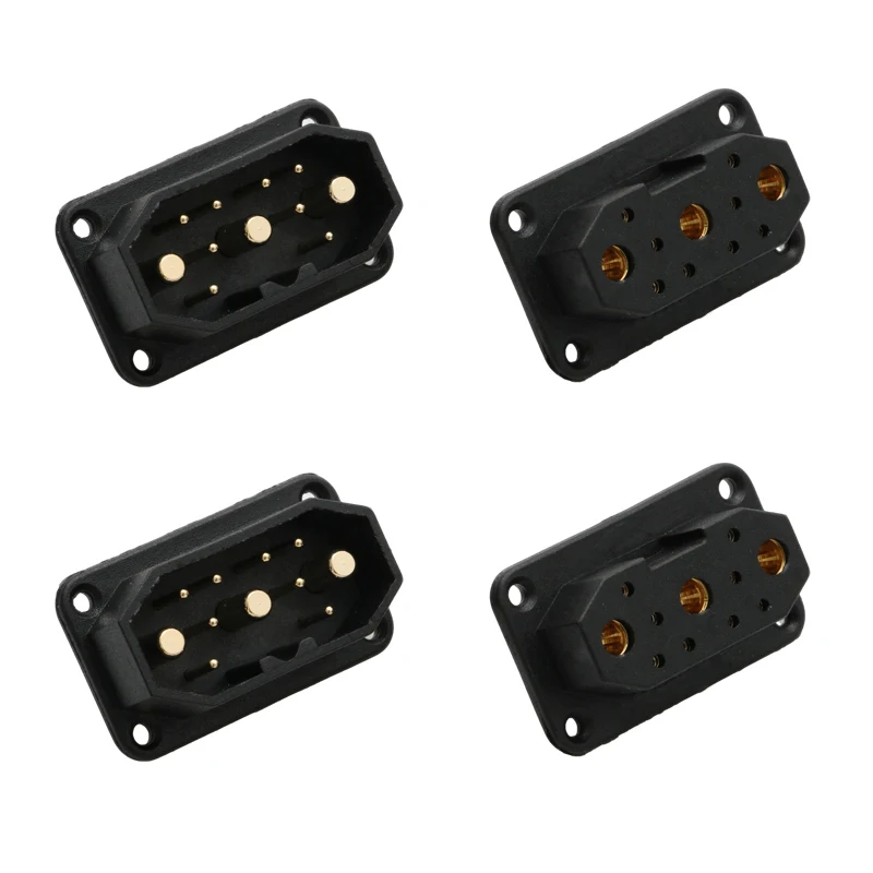 Enhance your electric vehicle or RC project with these durable, black power battery connectors featuring a sleek HY3+8 pin configuration. Each set includes two pairs with gold-plated copper terminals for superior conductivity and corrosion resistance. The connectors are rated for up to DC 500V, with large pins supporting peak currents of 50A and rated 25A, and small pins handling peak 7A and rated 5A. Constructed from copper and PA insulating material, they operate efficiently within -20°C to 100°C. Their compact, rugged design ensures reliable high-current connections, making them an essential upgrade for your power systems.