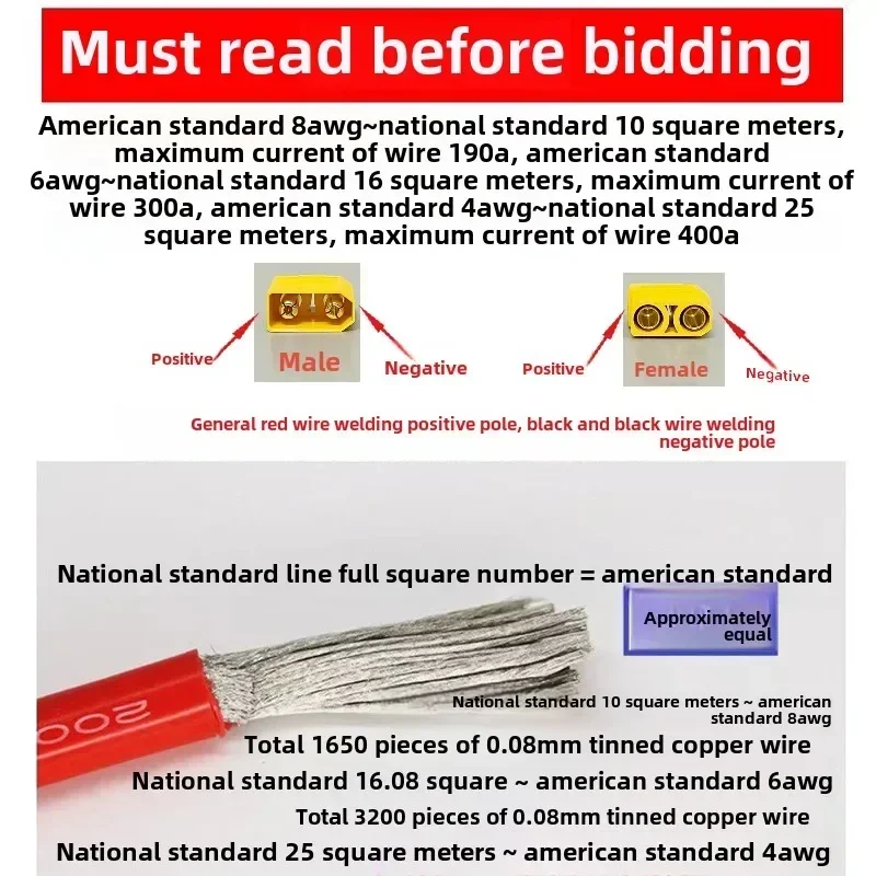 - Supports wire gauges of 6 AWG and 8 AWG, with lengths of 20 cm, 50 cm, and 100 cm, offering versatile options for various installation needs and high load capacity.