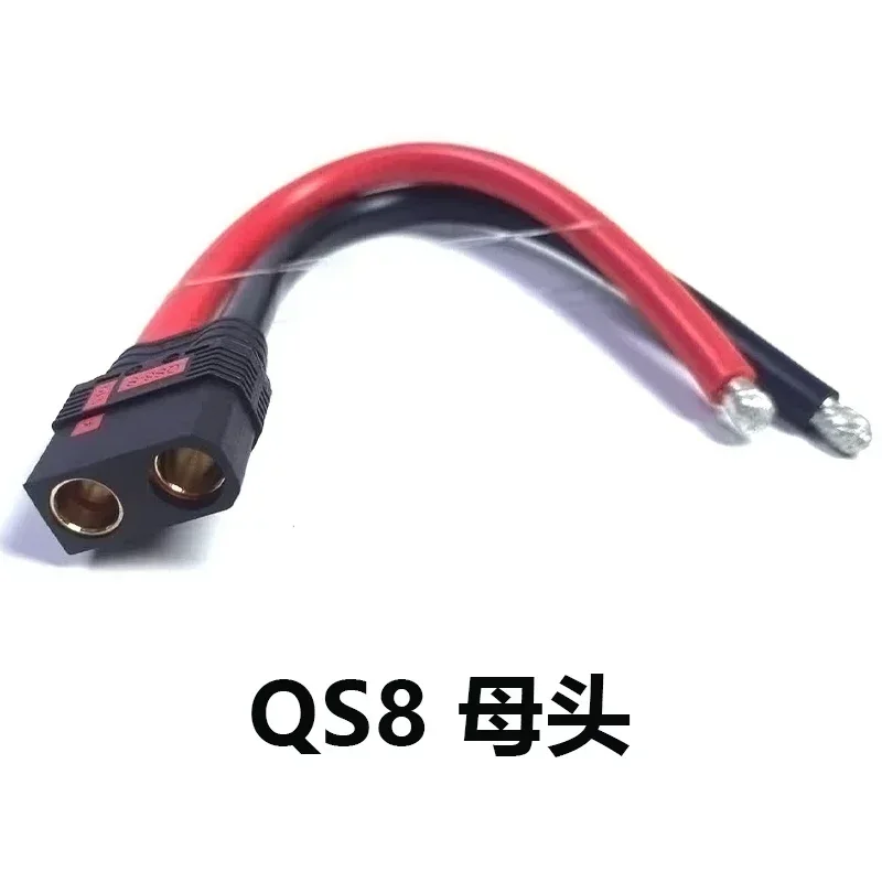 Experience the reliable connection provided by this high-current connector set, perfect for UAVs, electric motorcycles, and battery terminals. Crafted with durability in mind, these connectors feature a sleek black casings with vivid red and blue color-coded insulation for positive and negative terminals. The flexible silicone weld lines ensure longevity and resistance to wear, even in demanding conditions. With models QS8-S, QS9L, and QS10-S, this series supports wire gauges of 6 AWG and 8 AWG, accommodating lengths of 20 cm, 50 cm, and 100 cm. Designed for high-voltage applications up to 415 V, they promise safety, efficiency, and ease of installation. Their industrial aesthetic highlights technical precision suited for professional electronic setups.