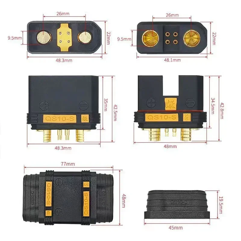 Enhance your power systems with this robust QS10-S high-current connector set. Built to last and designed for ease of use, they ensure your equipment remains efficient and safe, even under tough conditions. Whether upgrading your vehicle, aircraft, UAV, or forklift, these connectors provide peace of mind through their superior craftsmanship and technical precision. Make this smart investment now to guarantee high performance, safety, and long-term reliability for your electrical projects. Trust in quality and choose a solution that meets your demanding power requirements effortlessly.