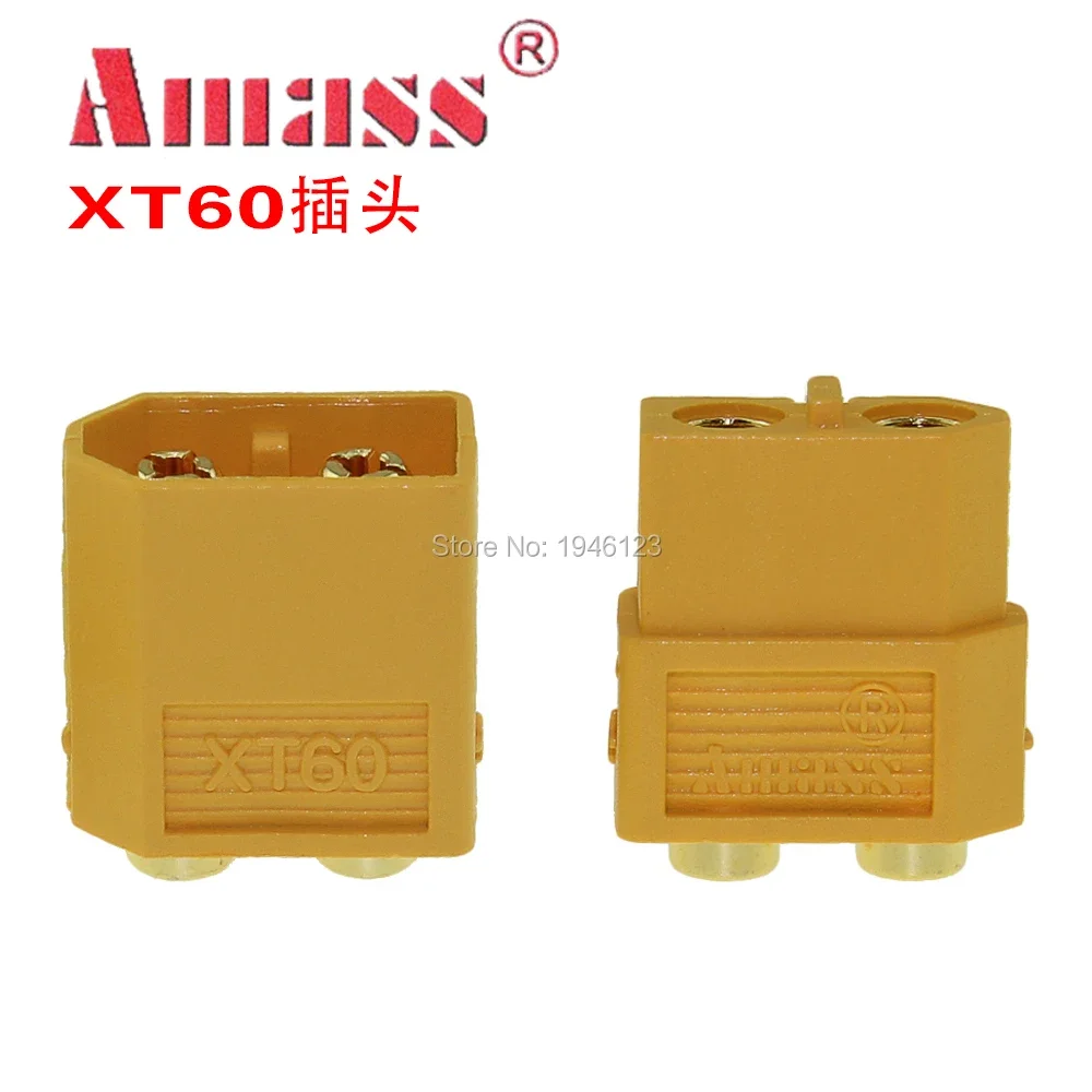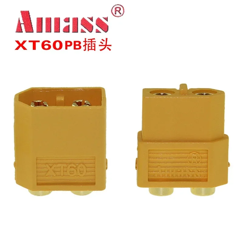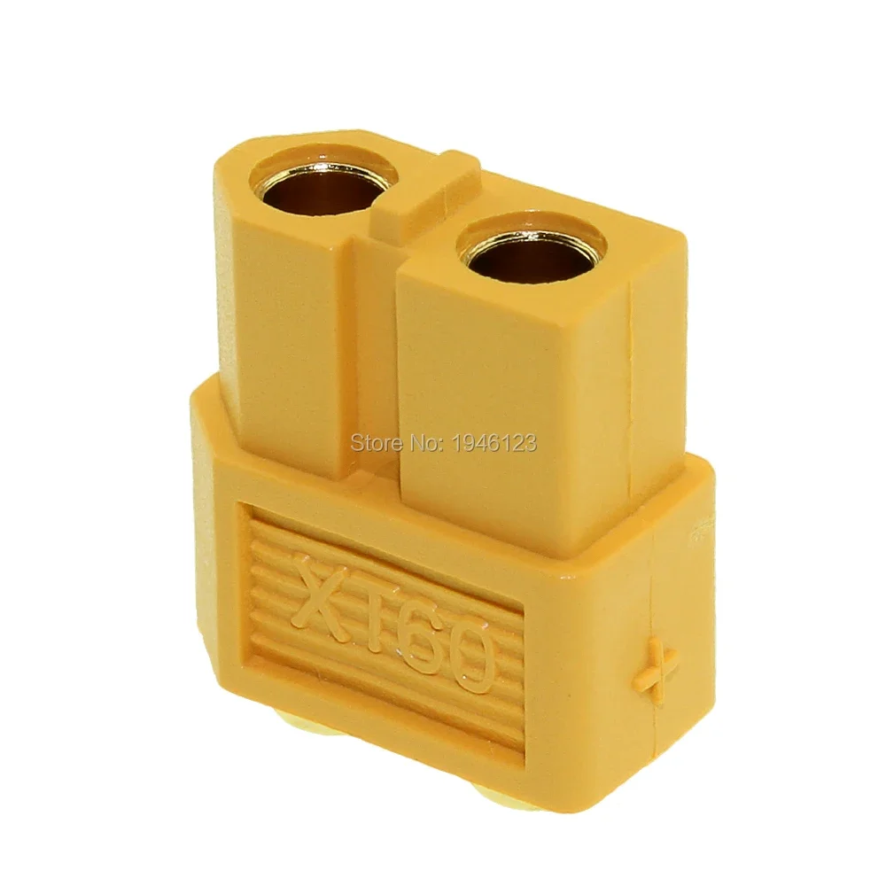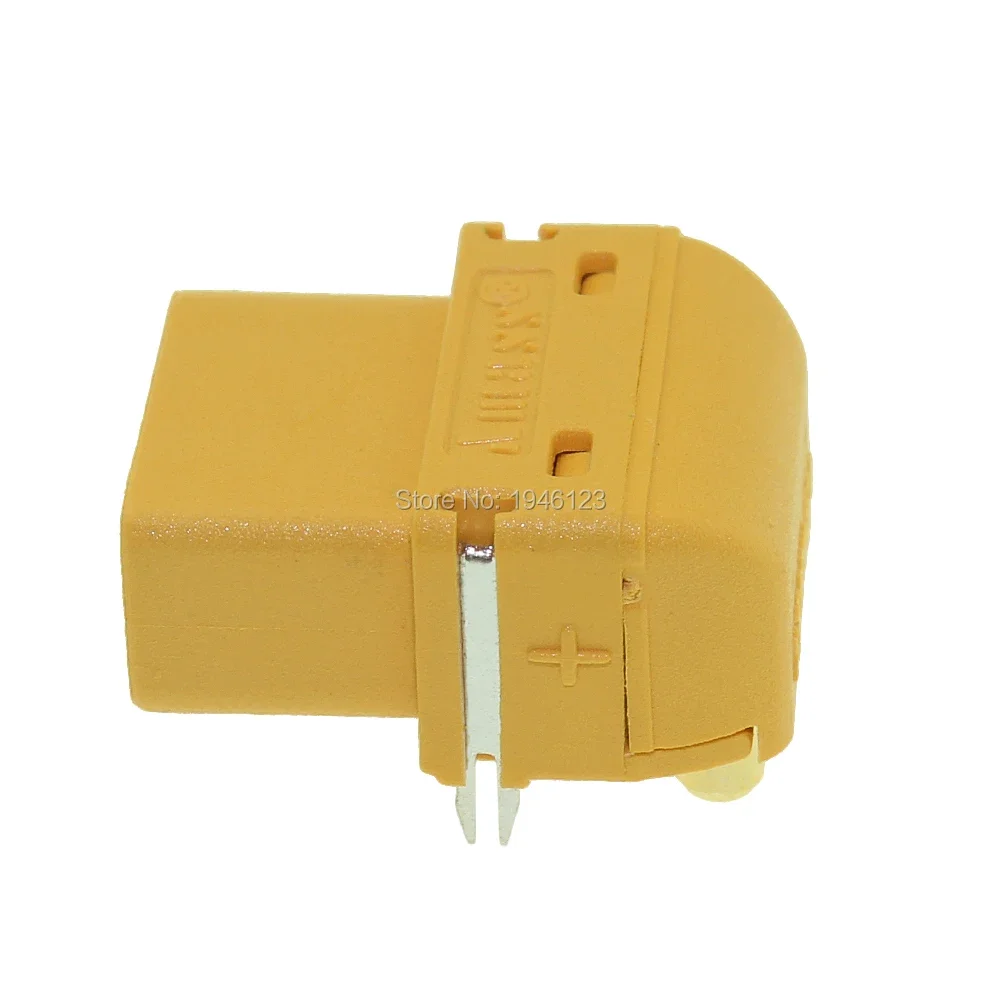 Experience reliable power connections with this set of five pairs of high-current XT60PB female and XT60PW male PCB bullet connectors. Designed with precision for RC applications, these connectors feature a sleek yellow color for enhanced visibility. Crafted from durable gold-plated copper with a PA internal material, they ensure excellent electrical conductivity and corrosion resistance. The compact, streamlined design includes a rear concave jacket for waterproofing and easy soldering, while clear polarity markings help prevent connection errors. The stylish housing incorporates groove slots for added strength and aesthetic appeal. With a 180-degree outward tail, wiring becomes effortless. These connectors are rated to handle continuous currents up to 30A and peak currents of 60A at 500V DC, making them perfect for RC batteries, speed controllers, and chargers.