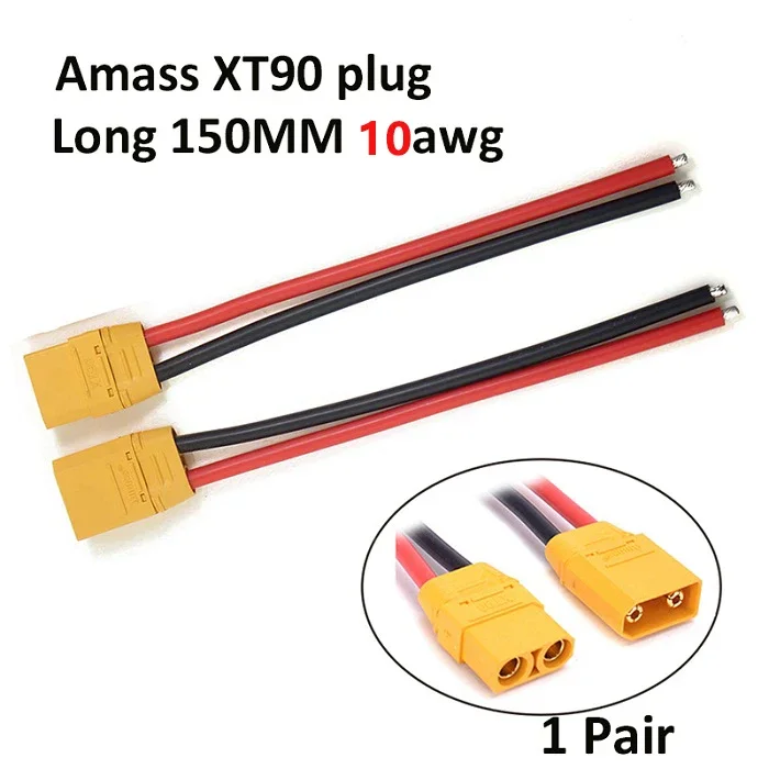 - Pair of high-quality AMASS XT90 male and female connectors with 150mm 10 AWG silicone wires, designed for high current RC applications and ensuring durable, secure connections.