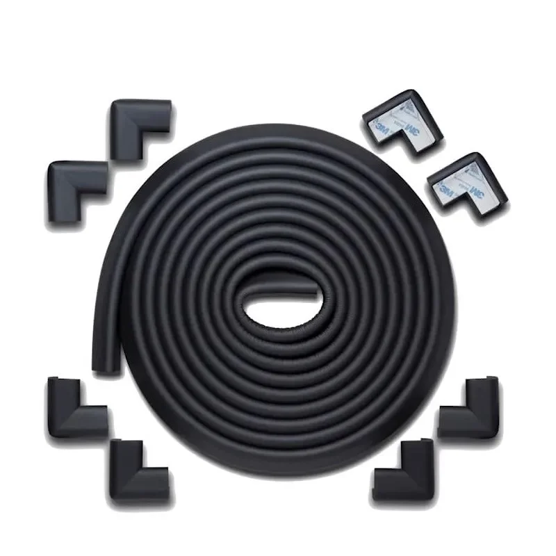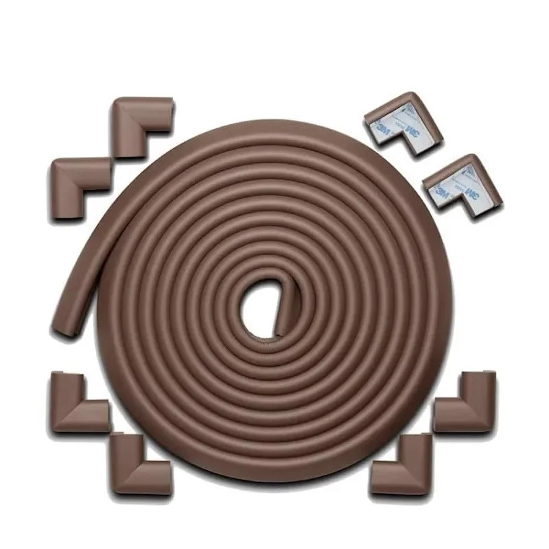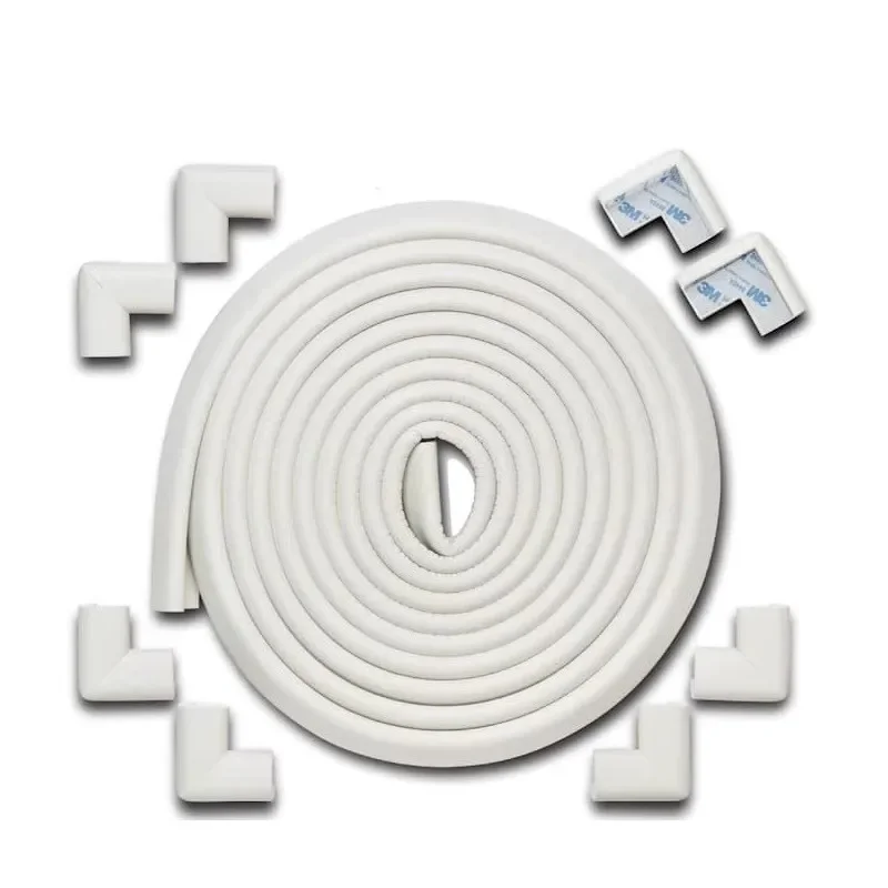 Ensure your child’s safety with this heavy-duty, high-density impact-absorbing rubber foam edge and corner protector, measuring 5 meters long and featuring eight pre-taped corners for effortless, tool-free installation with 3M double-sided adhesive tape that leaves no residue. Crafted in a soft matte finish in black, brown, or white, it seamlessly blends into your home décor while providing effective cushioning on all standard furniture and tables of various shapes and sizes. Designed for durability, safety, and easy removal, this childproofing solution offers comprehensive protection for your little one, giving you peace of mind during their active exploration.