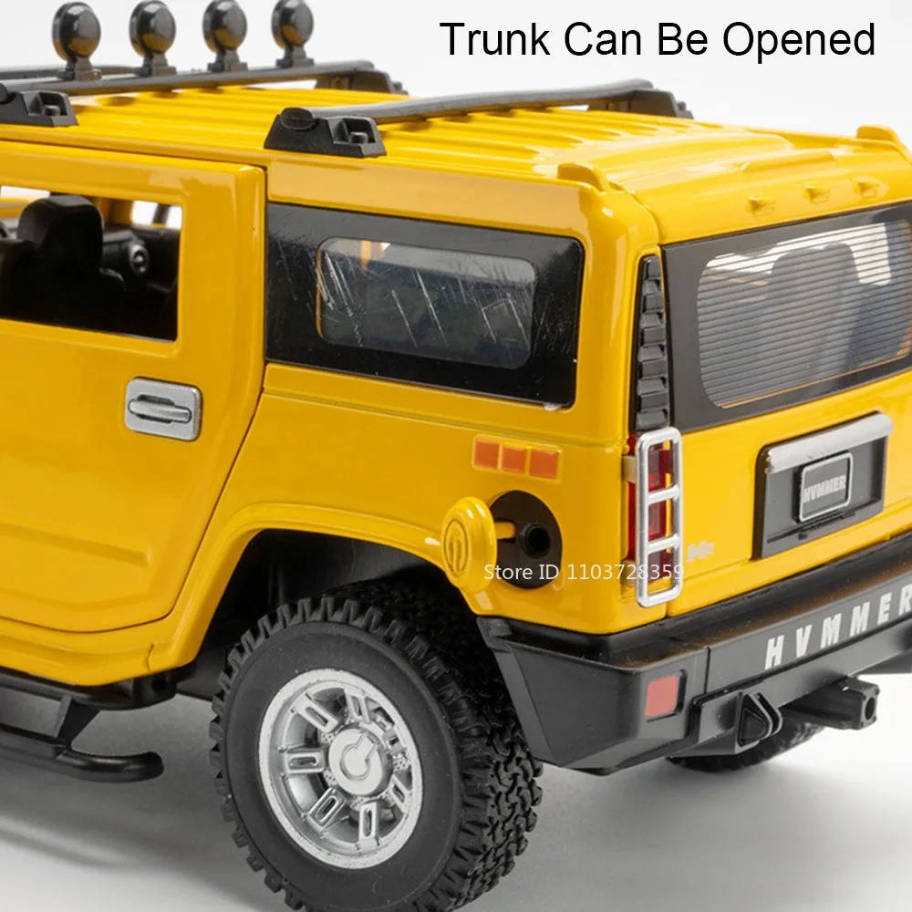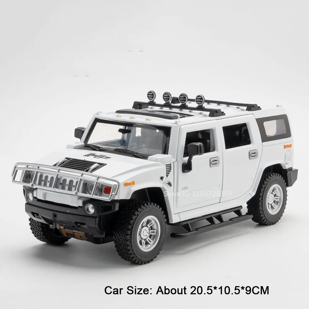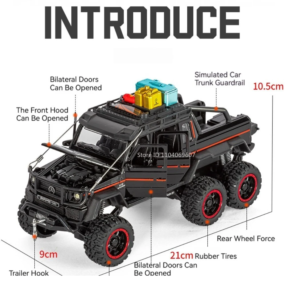 Experience the thrill of owning a meticulously crafted replica with this high-simulation diecast toy car. Designed to captivate enthusiasts and collectors alike, this model exudes realism with its detailed external and internal features. Its rugged exterior is finished in vibrant white, complemented by striking black accents on the grille, window frames, and mirrors, creating a bold off-road aesthetic. The vehicle features functional details such as an openable hood, trunk, and doors, and operates with engaging sound and light effects. Equipped with shock absorption tires and a sturdy alloy body, this model is built to withstand impact and simulate real-road performance. Perfect for display or active play, it brings the excitement of off-road adventures into your collection.