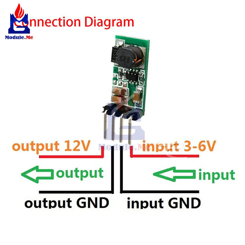 This compact DC-DC boost converter module efficiently elevates input voltages from 3V-6V to a stable 12V output, with a maximum input current of 1.2A that can be increased to 2A by removing a resistor. Operating at a frequency of 1.0 MHz with an efficiency of 80-90%, it supports a continuous output current of 50mA. Equipped with over-temperature protection, it automatically disables power above 150°C and restarts below 30°C. Its small size (2.05cm x 1.00cm) and 2.54mm pin pitch make it ideal for Arduino, FPGA, LED lighting, relay control, and wireless communication projects, operating reliably between -40°C and +85°C.