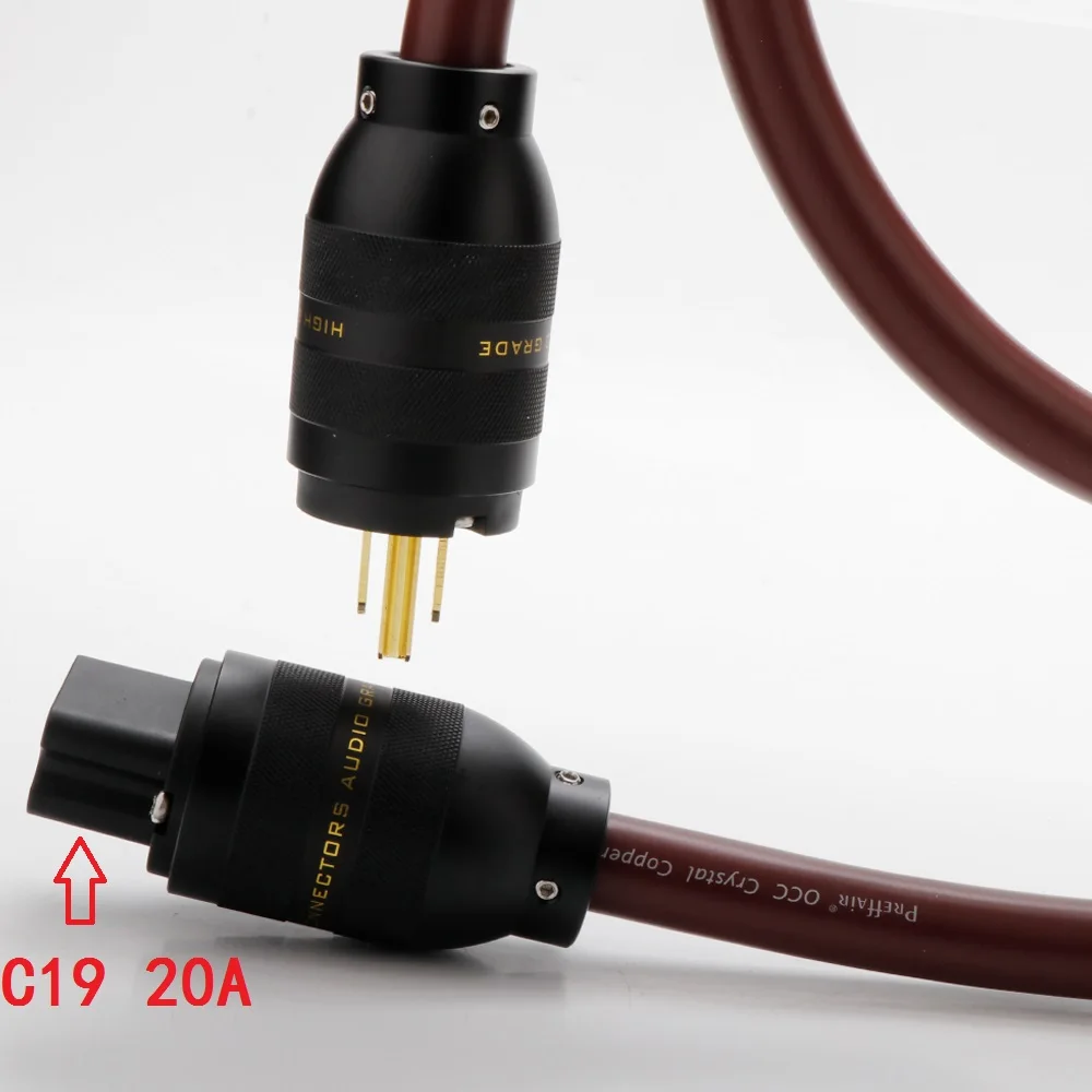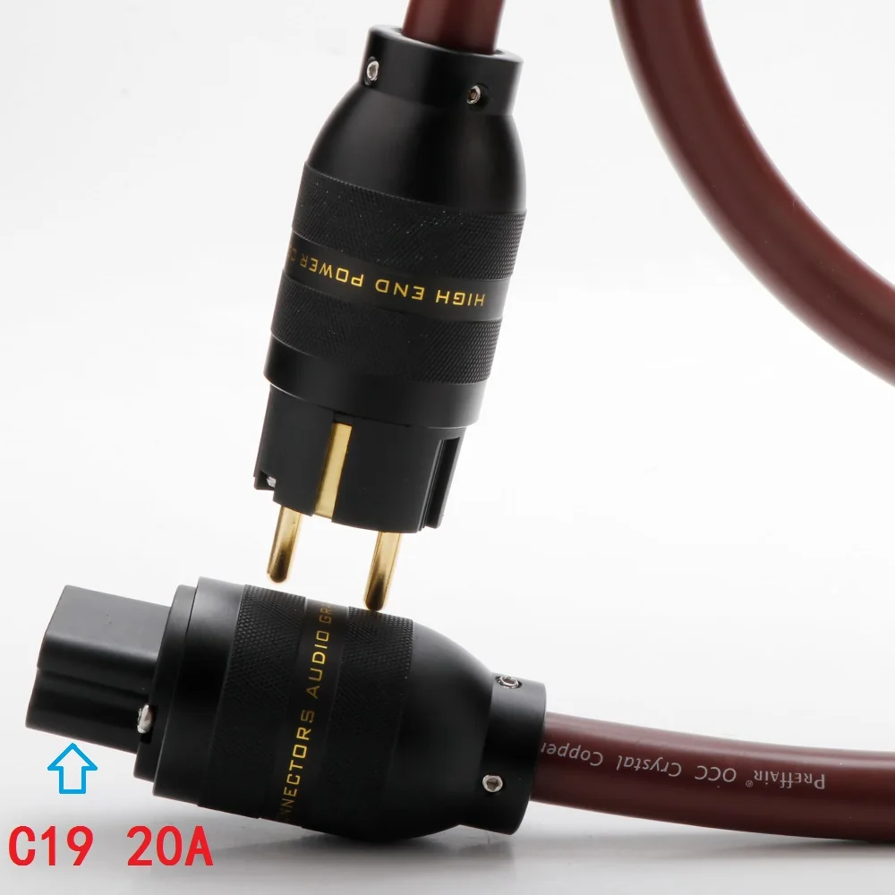 Experience premium audio performance with this high-end power cord featuring 16mm OCC (Single Crystal Copper) conductors arranged in 65 cores of 0.25mm thickness for exceptional sonic clarity and low noise. Available in lengths from 0.5m to 3.0m, it accommodates cable diameters from 10mm to 18mm. The cord features durable, sleek black connectors with textured grips, brass pins, and gold-plated contacts, ensuring excellent conductivity and reliability. Equipped with EU and US 90-degree right-angle plug connectors, as well as IEC C15 and C19 female connectors, the cable is designed for professional audio equipment, amplifiers, speakers, DVD players, and multimedia devices, delivering high-fidelity sound with refined durability.