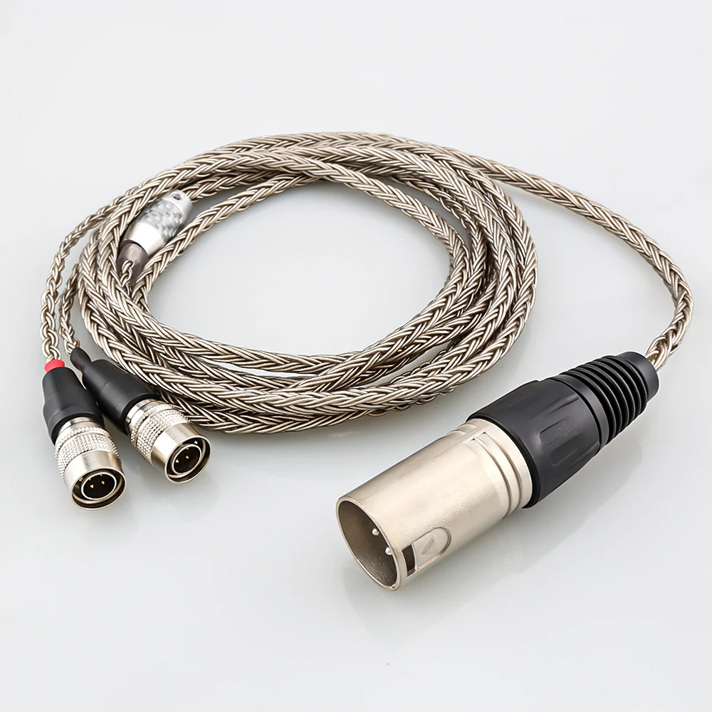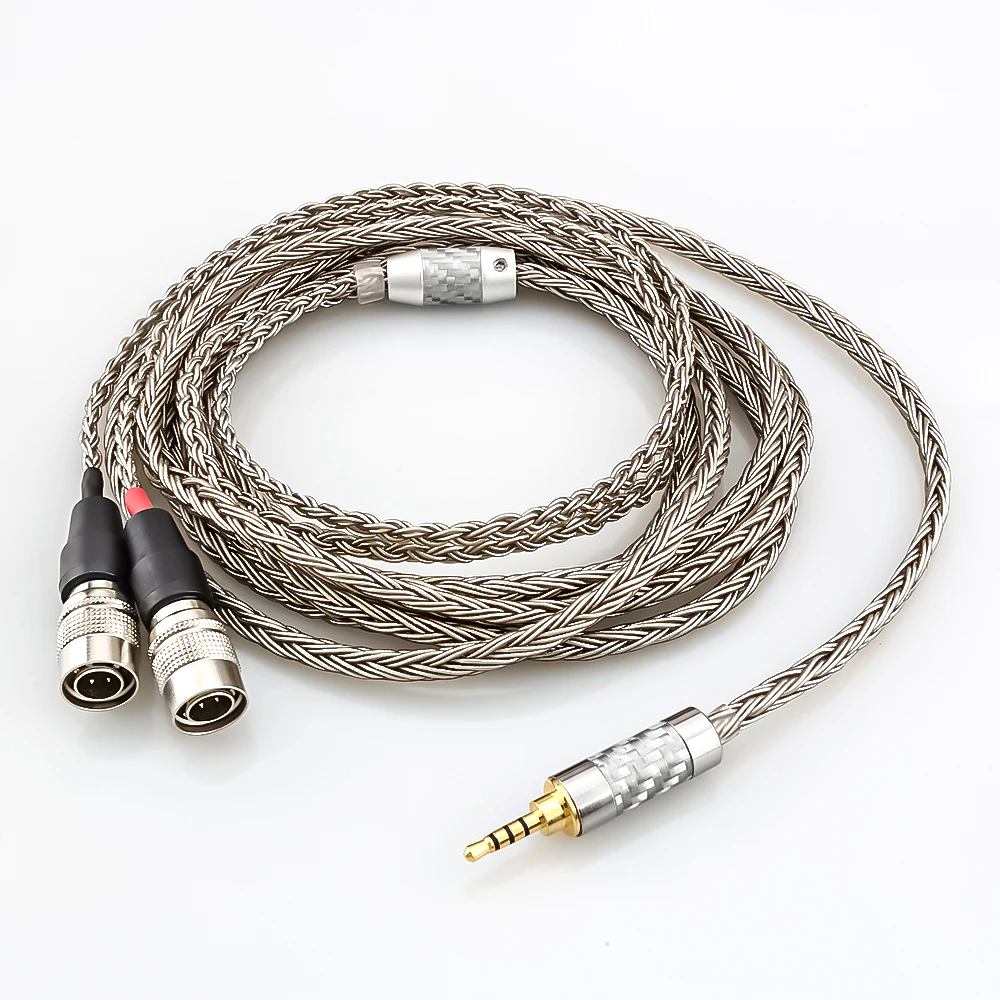 Experience a new level of sound clarity with this premium 16-core audio upgrade cable designed for discerning listeners. Crafted with 16×22 (0.05 mm) strands of 8N OCC single crystal copper and silver-plating, it ensures exceptional conductivity and durability. The twisted balanced configuration enhances signal integrity, minimizing interference. Featuring polyethylene insulation, Teflon dielectric, and an air PE tube structure, this cable offers superior signal stability and reduced signal loss. Its sleek, metallic silver finish combined with a textured braided design provides an industrial, high-end aesthetic. With versatile connectors, including 2.5mm TRRS balanced, 3.5mm stereo, 3.5mm TRRS balanced, 4.4mm balanced, 6.35mm TRS, and 4-pin XLR male, it adapts seamlessly to various high-fidelity audio systems. Perfect for upgrade projects, it merges craftsmanship with performance.