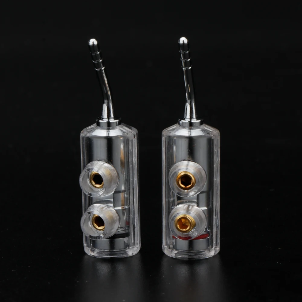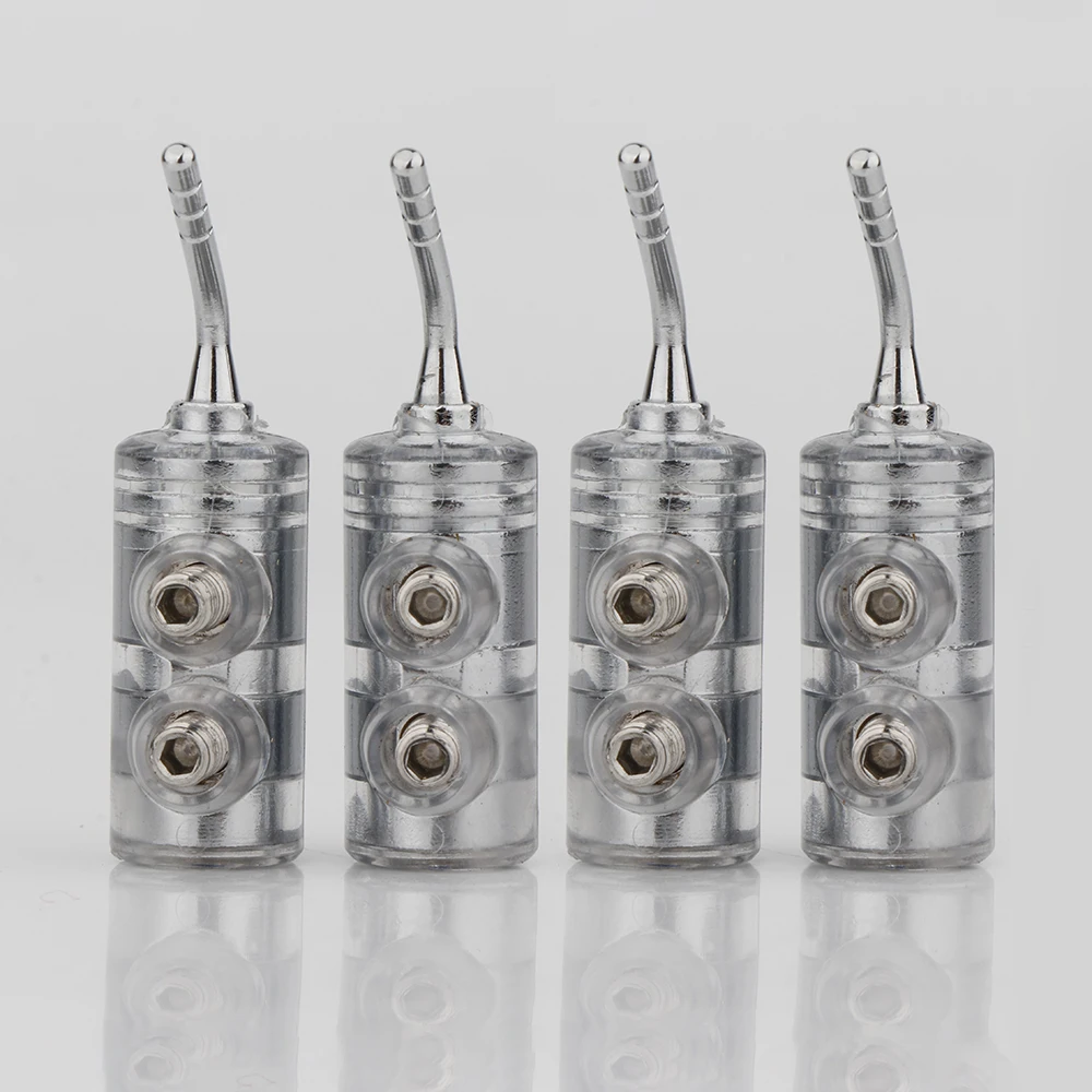 Experience premium sound quality with these high-end banana plug terminals, designed to provide secure and reliable connections for your audiophile setup. Crafted from durable brass, each plug features a transparent nylon and fiberglass housing that showcases the internal gold or rhodium-plated connectors. With a clean, sleek appearance, these terminals combine functionality with aesthetic appeal, highlighting the sophistication of your audio system. The 9.5mm diameter and 43mm length ensure a perfect fit for high-quality speaker and amplifier sockets. Double hex screw locking mechanisms guarantee a tight connection, preventing signal loss and ensuring optimal sound clarity. Ideal for serious audio enthusiasts aiming for superior conductivity, durability, and style in their home or professional audio environments.