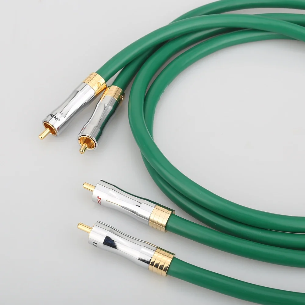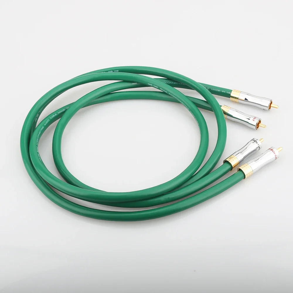 Experience exceptional audio fidelity with this high-quality green RCA interconnect cable, designed for audiophiles who demand top-level performance. Made with 99.998% pure copper conductors and silver plating, it guarantees clear, detailed sound, reducing distortion and signal loss. The sleek, vibrant green outer layer combines durability with style, while the polished metal shells and gold-plated connectors add a touch of sophistication. With self-locking, copper-plated plugs featuring a ridged grip for easy handling, it ensures a secure connection and shielding from external interference. Whether connecting a DVD player or an amplifier, this cable offers reliable, lossless audio transmission, elevating your listening experience to new levels of clarity and warmth.