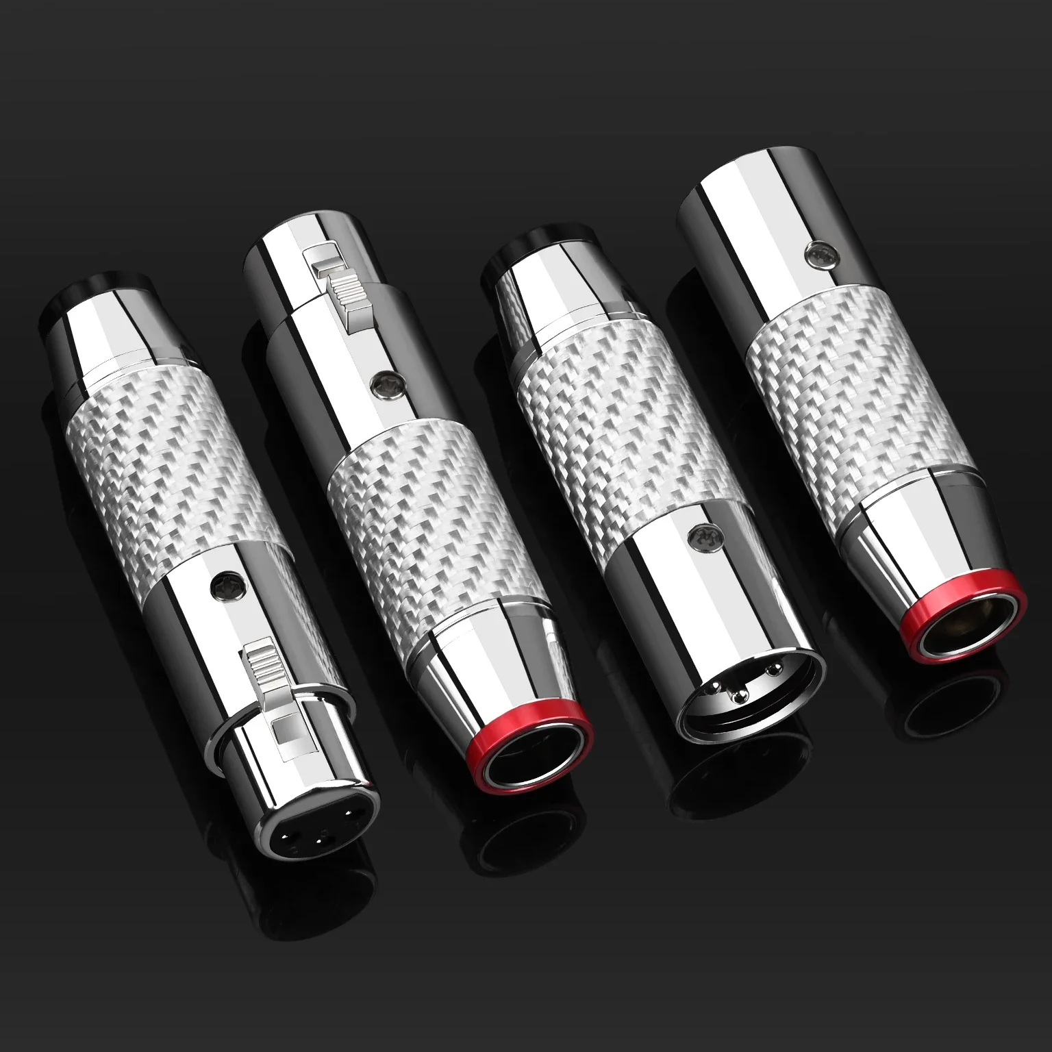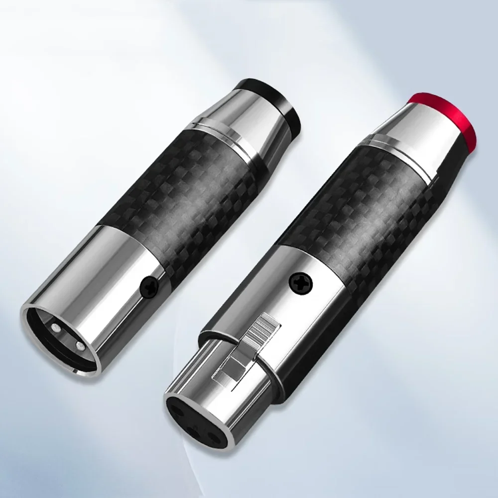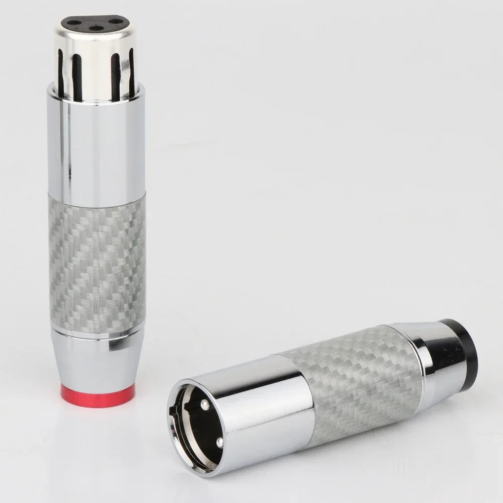 Experience premium audio performance with this high-end XLR connector featuring a robust silver-plated carbon fiber shell and 3-pin design available in male and female versions. Crafted from copper with Rhodium or Gold plating, it ensures optimal conductivity and anti-interference capabilities. Assembled via welding, it boasts a precise 11mm tail hole diameter suitable for 11mm DIY interconnect cables. Designed for professional use, it delivers pure sound transmission with thick ferrules for secure attachment, making it ideal for high-fidelity audio applications. Available in models XR1801 and XR1802, with color options in red and black, and packaged in sets of 2, 4, or 8 pieces for versatile setup needs.
