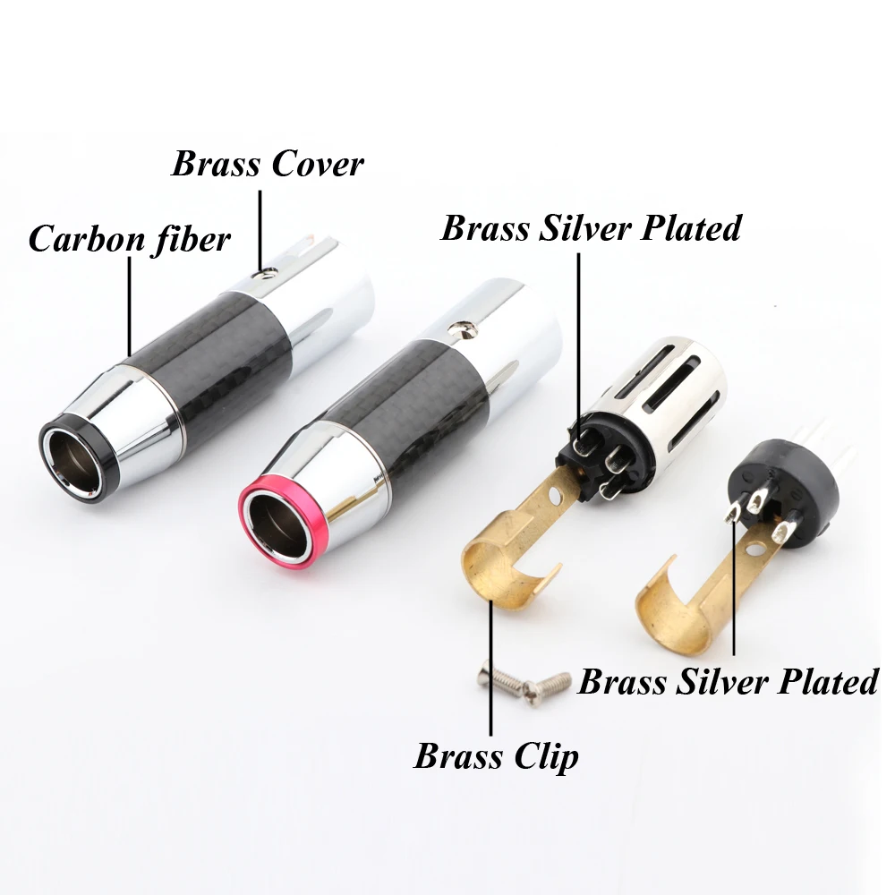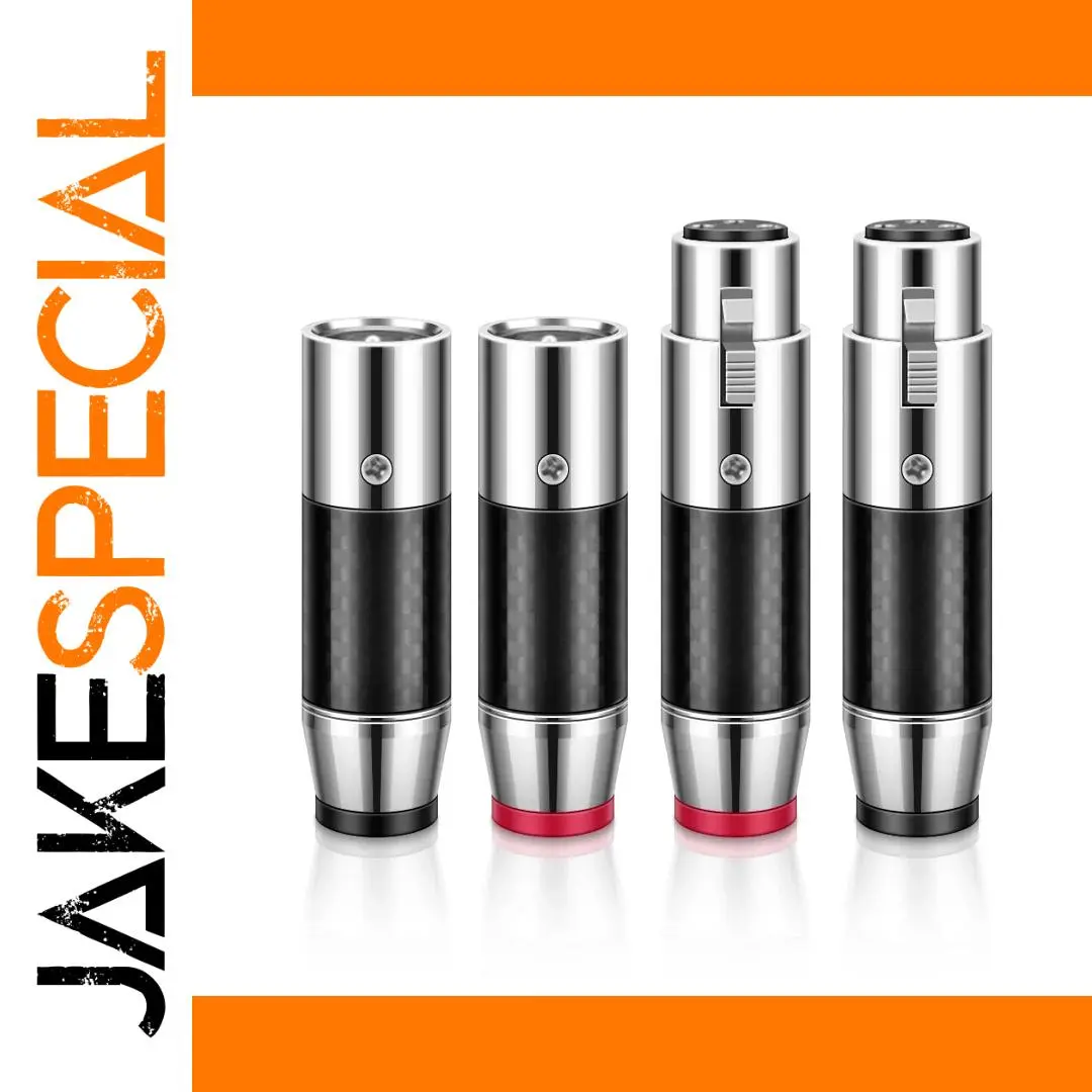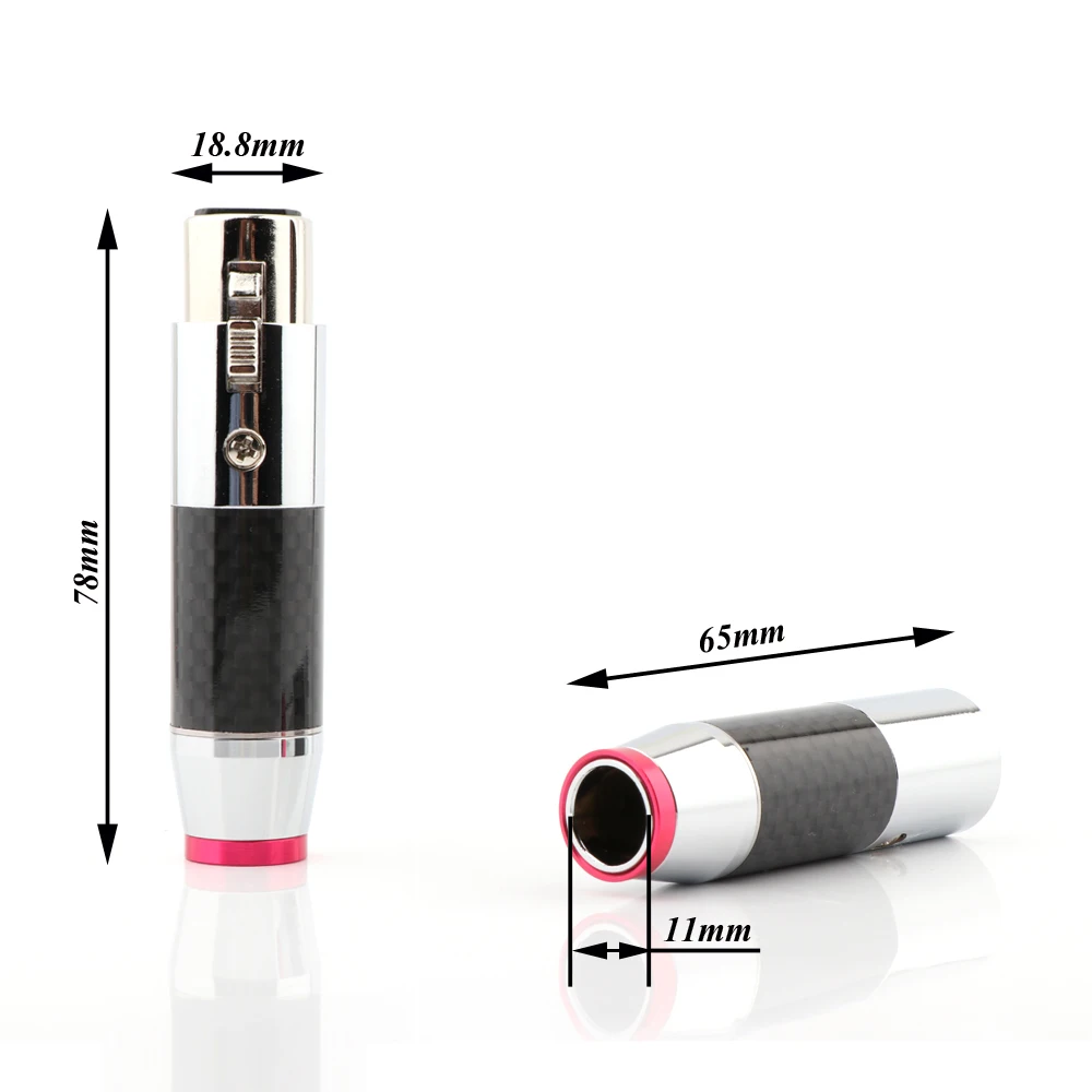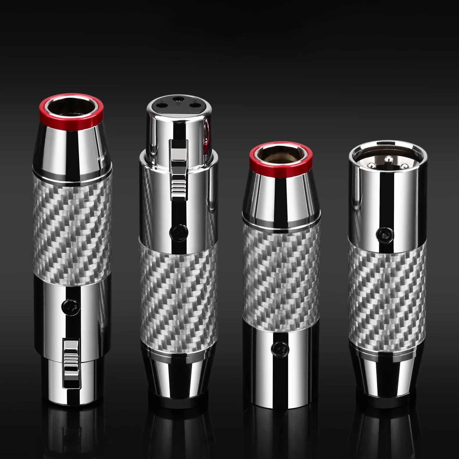 Experience premium audio performance with this high-end XLR connector featuring a robust silver-plated carbon fiber shell and 3-pin design available in male and female versions. Crafted from copper with Rhodium or Gold plating, it ensures optimal conductivity and anti-interference capabilities. Assembled via welding, it boasts a precise 11mm tail hole diameter suitable for 11mm DIY interconnect cables. Designed for professional use, it delivers pure sound transmission with thick ferrules for secure attachment, making it ideal for high-fidelity audio applications. Available in models XR1801 and XR1802, with color options in red and black, and packaged in sets of 2, 4, or 8 pieces for versatile setup needs.