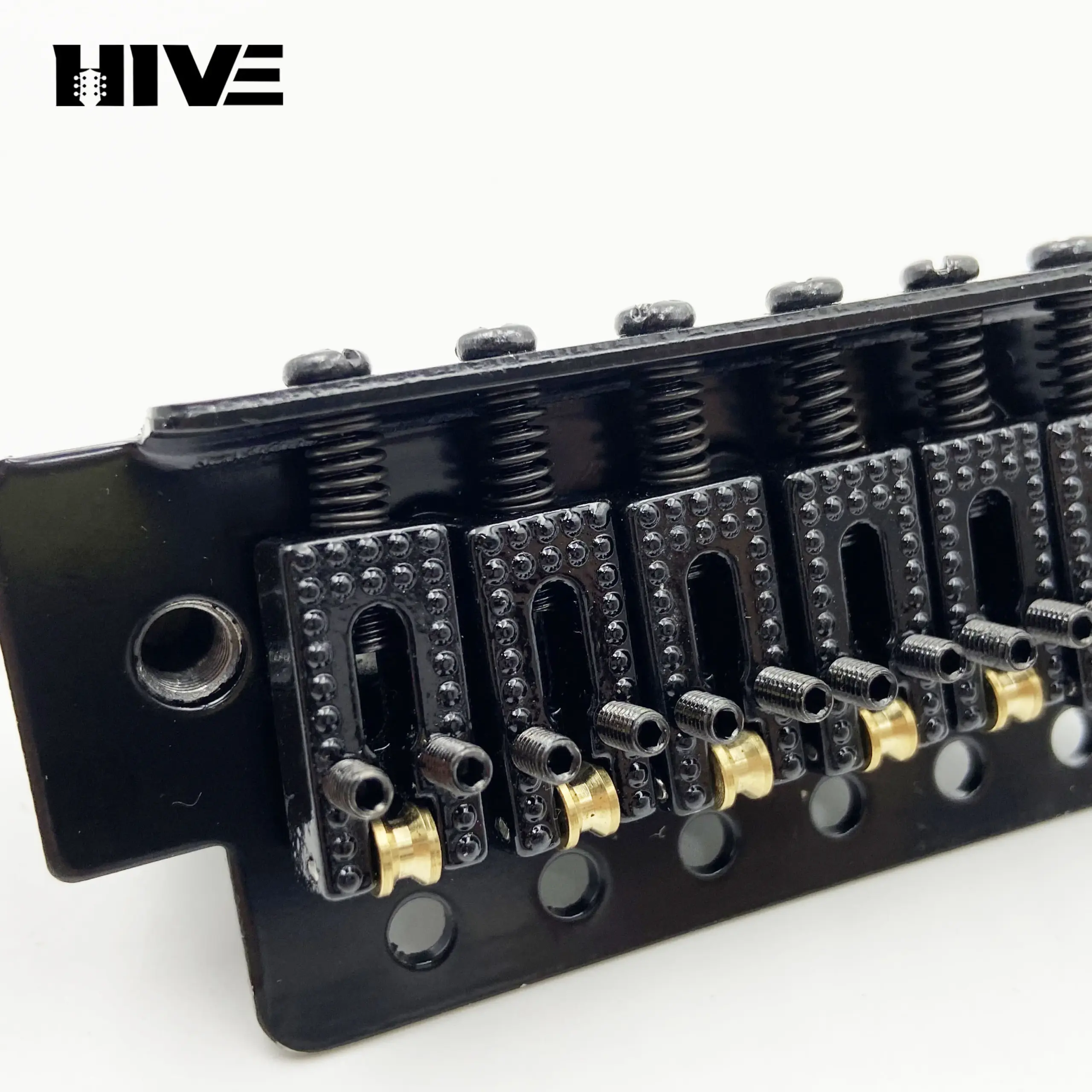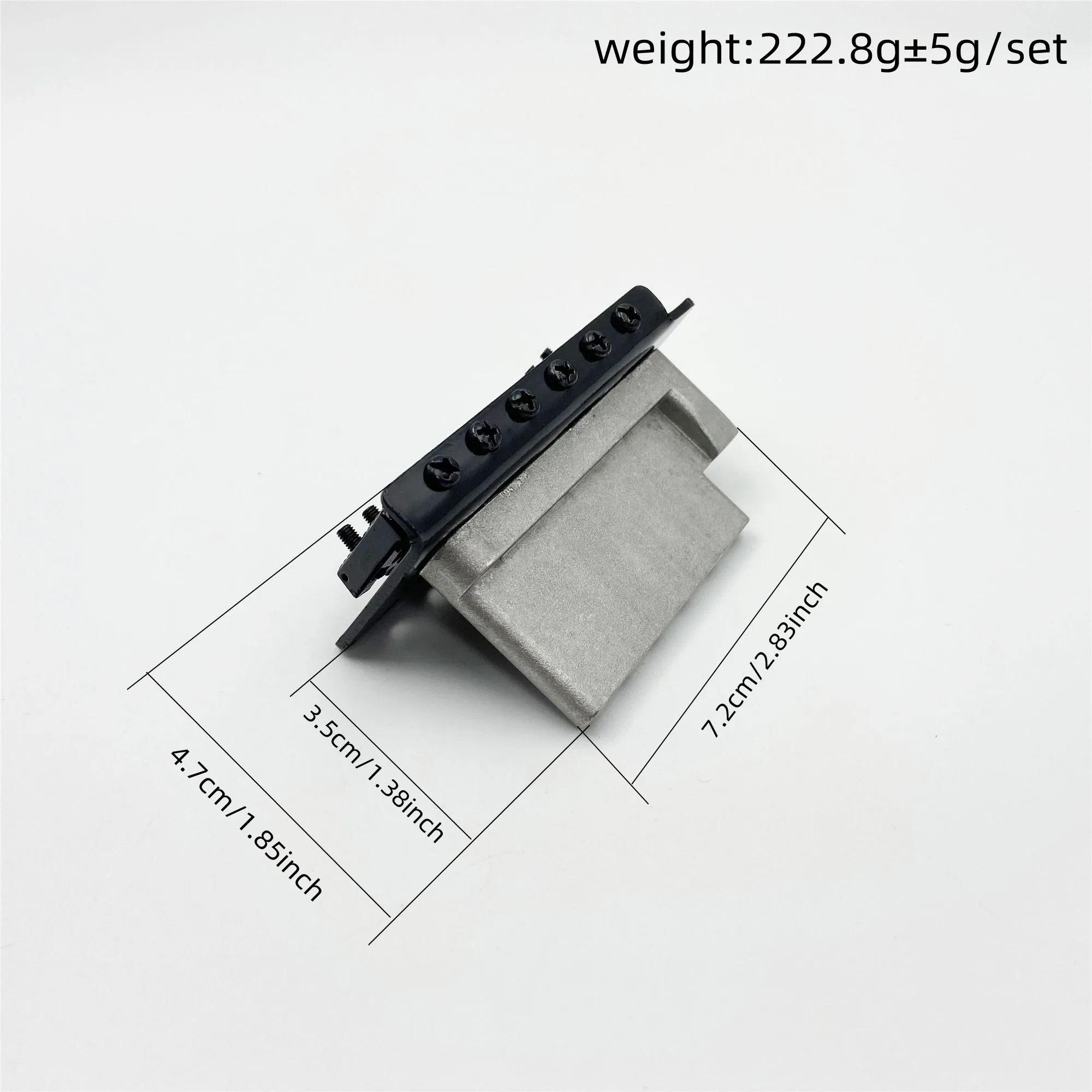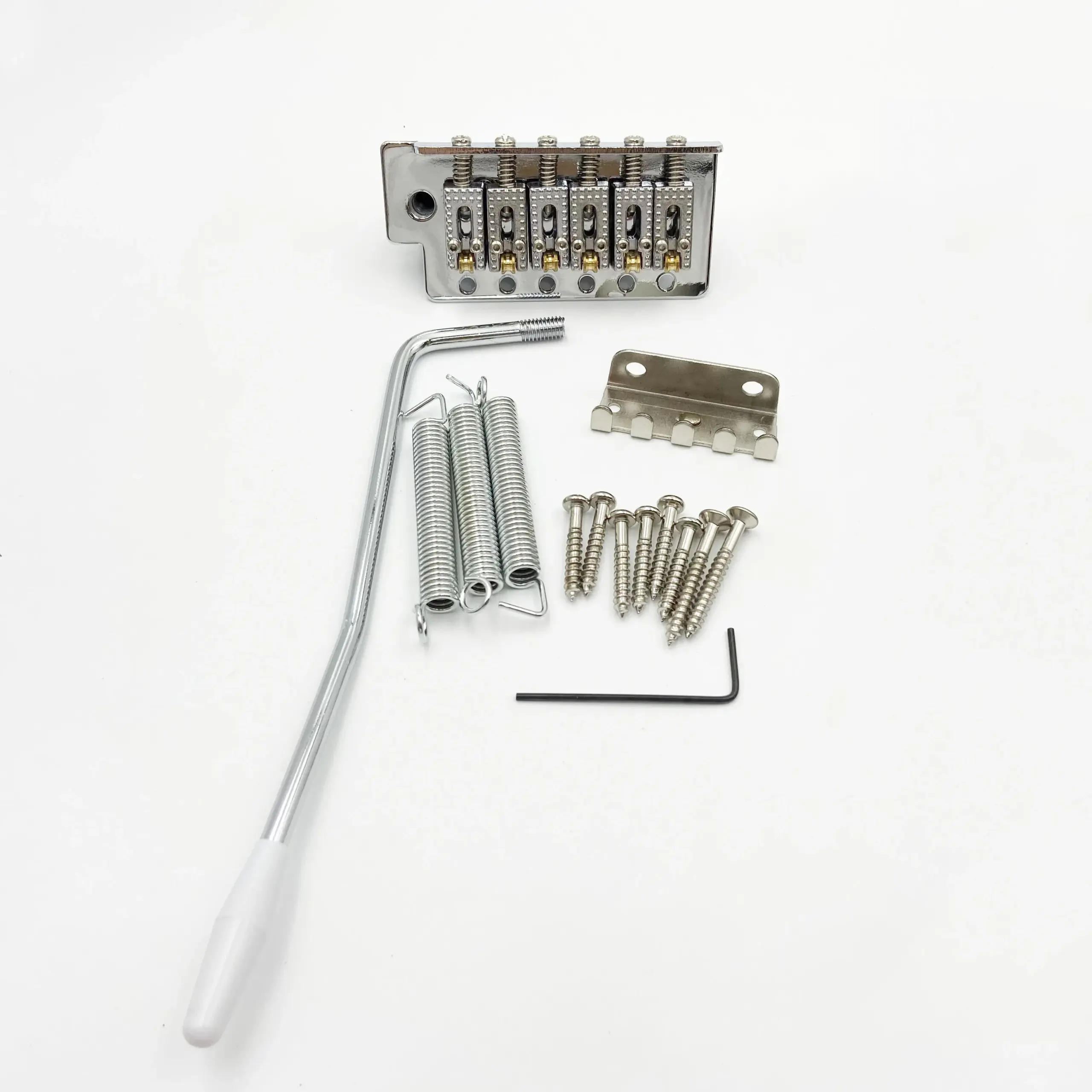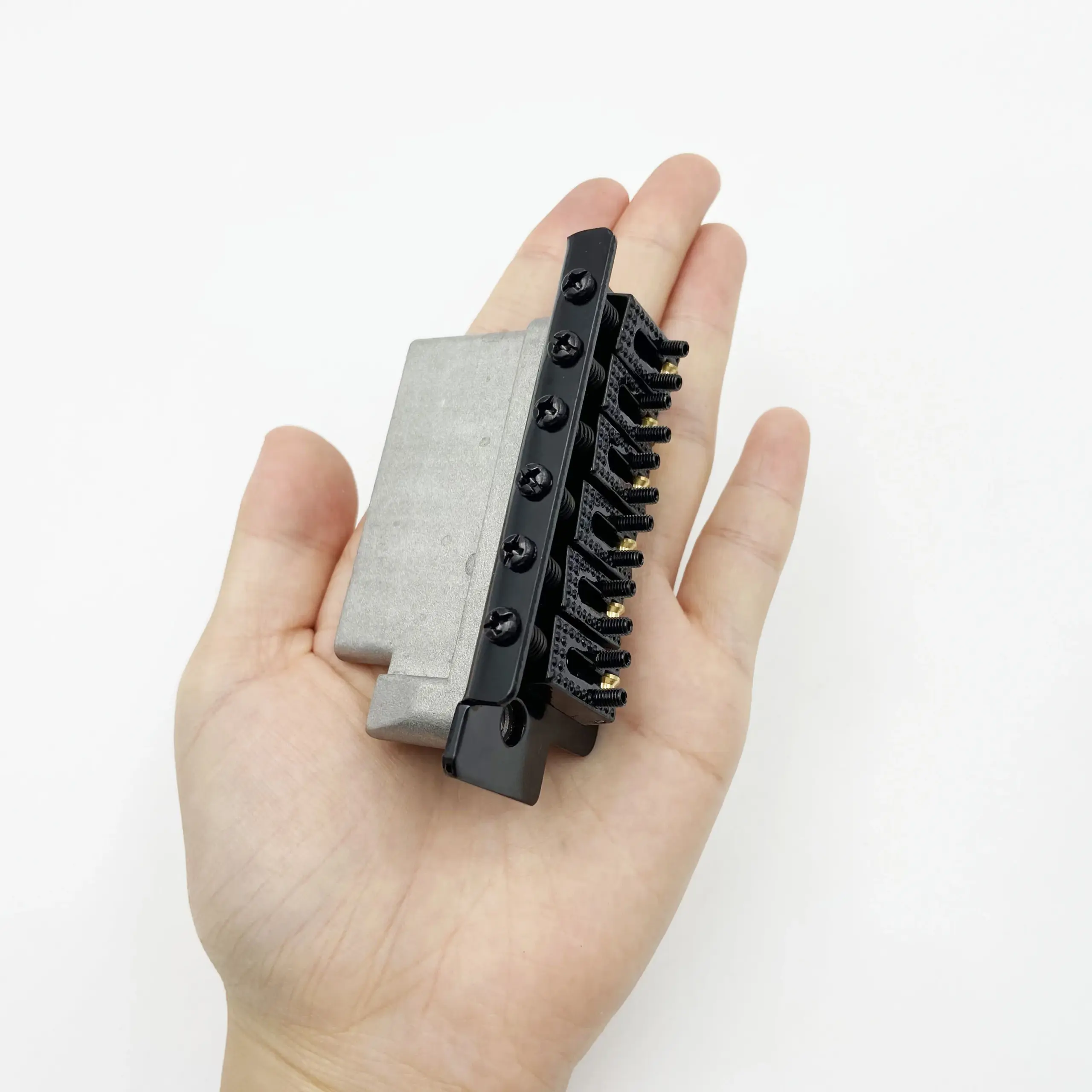 Experience superior sound and sleek aesthetics with this high-end ST Ball Code single-crank guitar bridge. Crafted from durable zinc alloy, it features a polished, black electrophoretic finish complemented by six gold-colored saddles for striking contrast. The set’s intricate design includes three tension springs, a black joystick tremolo arm, and precision adjustment screws, all assembled to optimize tuning stability and pitch control. The entire set weighs around 273 grams in gold and silver finishes, or 222.8 grams in black, emphasizing its lightweight yet sturdy construction. Whether you're upgrading your current guitar or building a custom instrument, this bridge seamlessly combines style, durability, and precision, providing the perfect foundation for your musical expression and ensuring a polished, professional performance every time.
