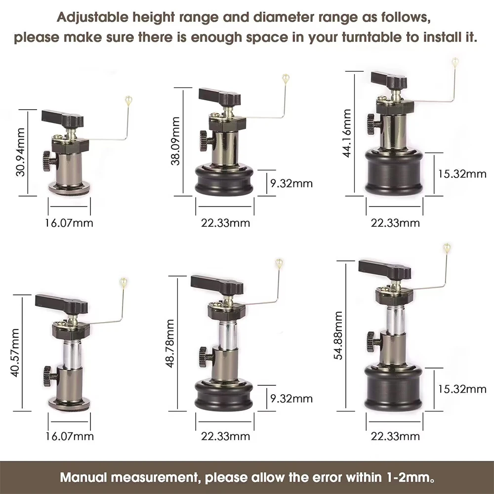 - Measures approximately 12.8mm in diameter, 4cm (1.57″) tall, and 8cm (3.14″) long, fitting most LP turntables and vinyl record players.