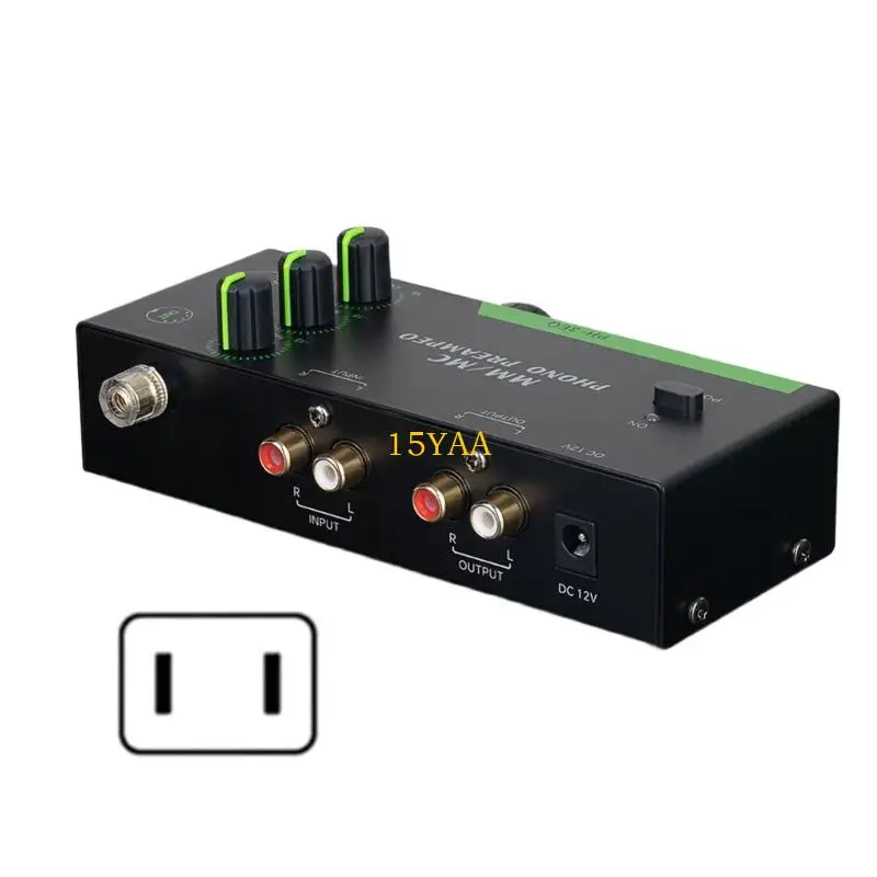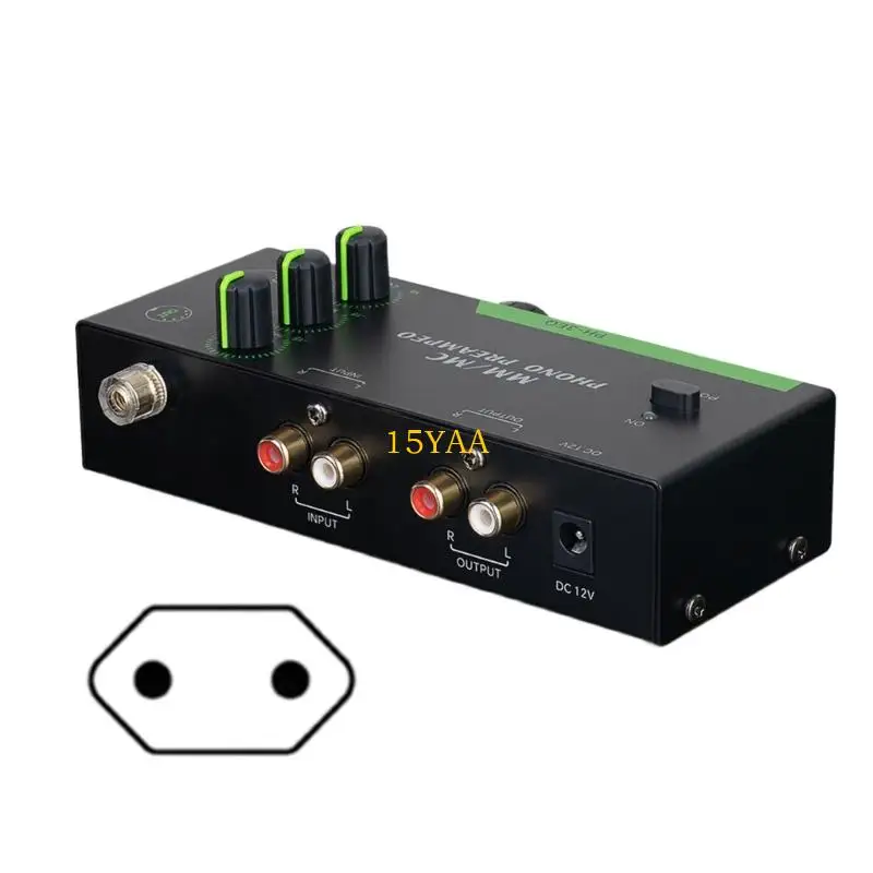 Enhance your vinyl experience with this studio-quality MM/MC phono preamplifier, featuring a sleek black metal housing with a matte finish. It offers a frequency response of 10Hz-20kHz (±0.5dB) and 10kHz-50kHz (±2dB), with total harmonic distortion below 0.05%. Equipped with adjustable gain of 40dB for MM and 60dB for MC, input sensitivities of 58mW and 6.8mV respectively, and signal-to-noise ratios exceeding 83dB and 70dB, this unit ensures pristine sound. It includes stereo RCA and 5-pin DIN connectors for input and output, balanced 5-pin XLR interfaces, and supports both EU and US power plugs for versatile setup.