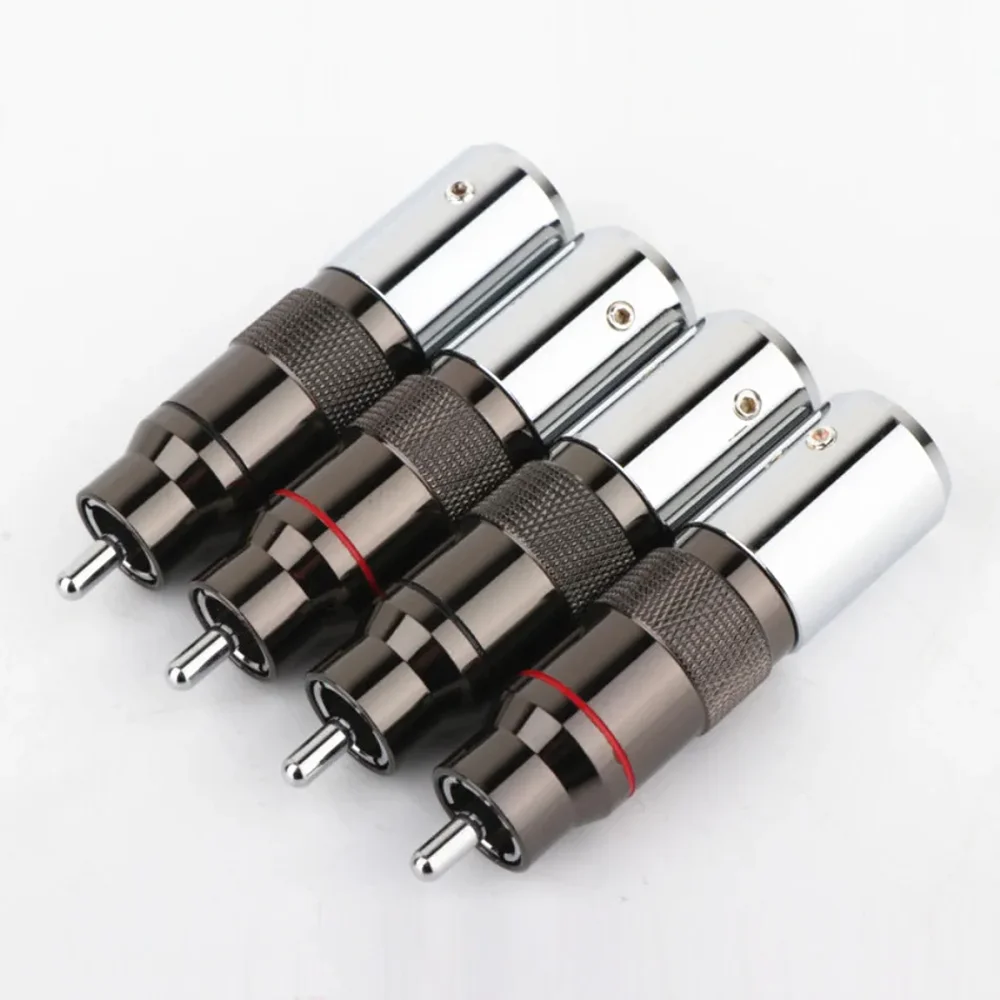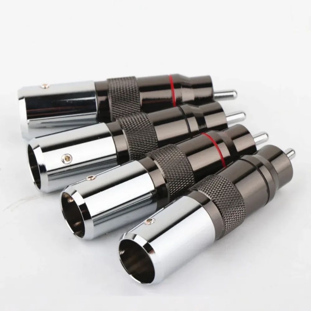 Experience top-tier audio and video connection quality with this high-fidelity RCA connector from Preffair. Crafted with precision, it features rhodium-plated male terminals on a durable brass base, ensuring excellent signal transmission and corrosion resistance. Its sleek, metallic appearance combines polished chrome-like finish with textured knurled sections for a secure grip during installation. The connector’s cylindrical shape tapers toward the rounded front tip, giving it a modern and professional look. Designed for audiophiles and home theater enthusiasts, this connector provides a reliable and durable connection, with a screw-fixed, weld-free attachment method supporting wires up to 12.9mm. Elevate your setup with these stylish and high-performance connectors, ensuring perfect sound and picture clarity.
