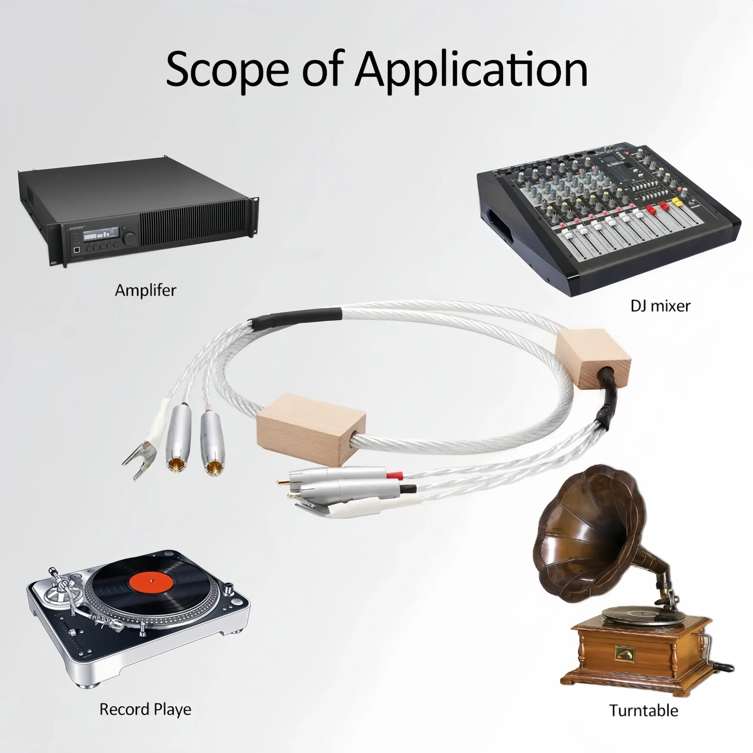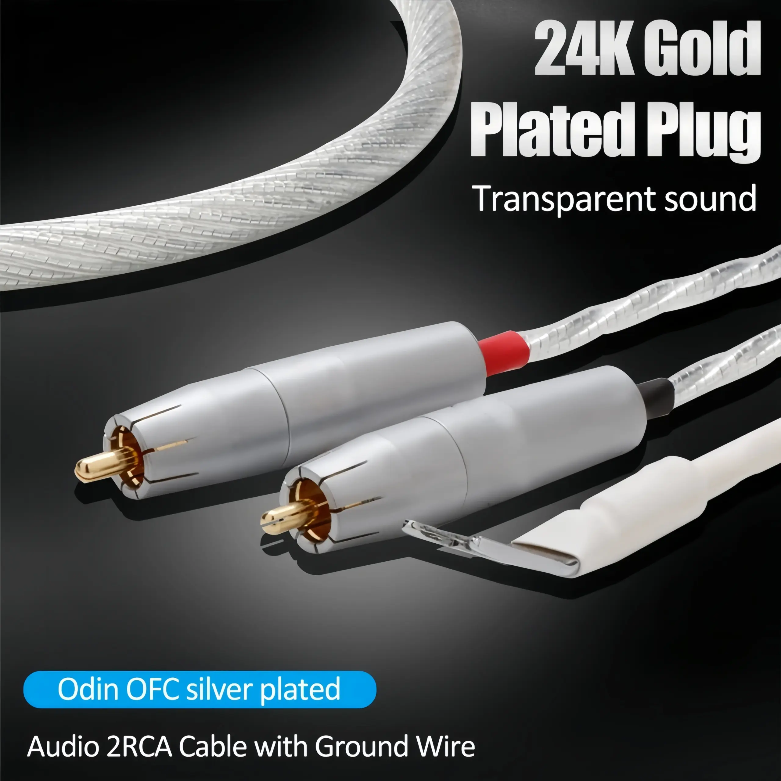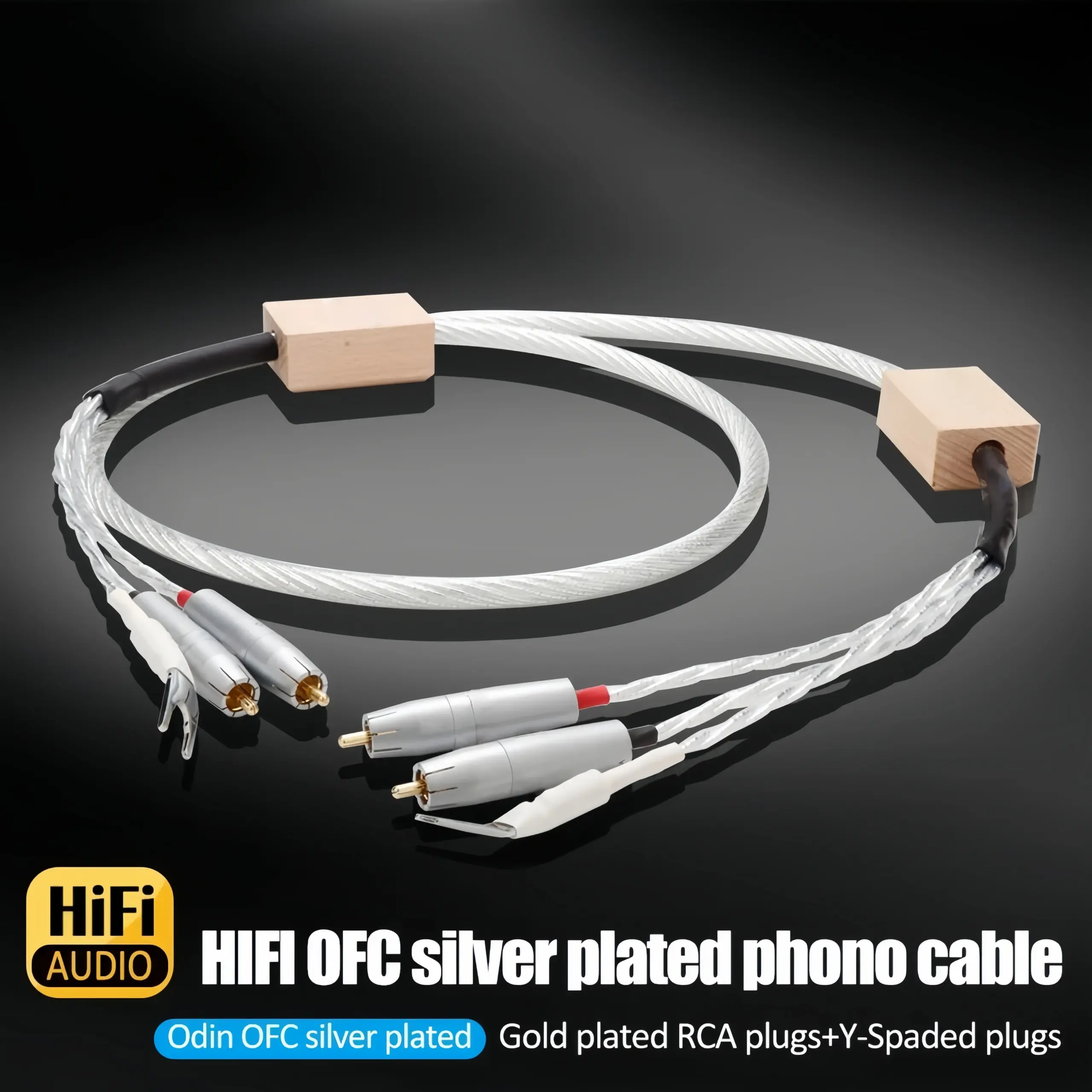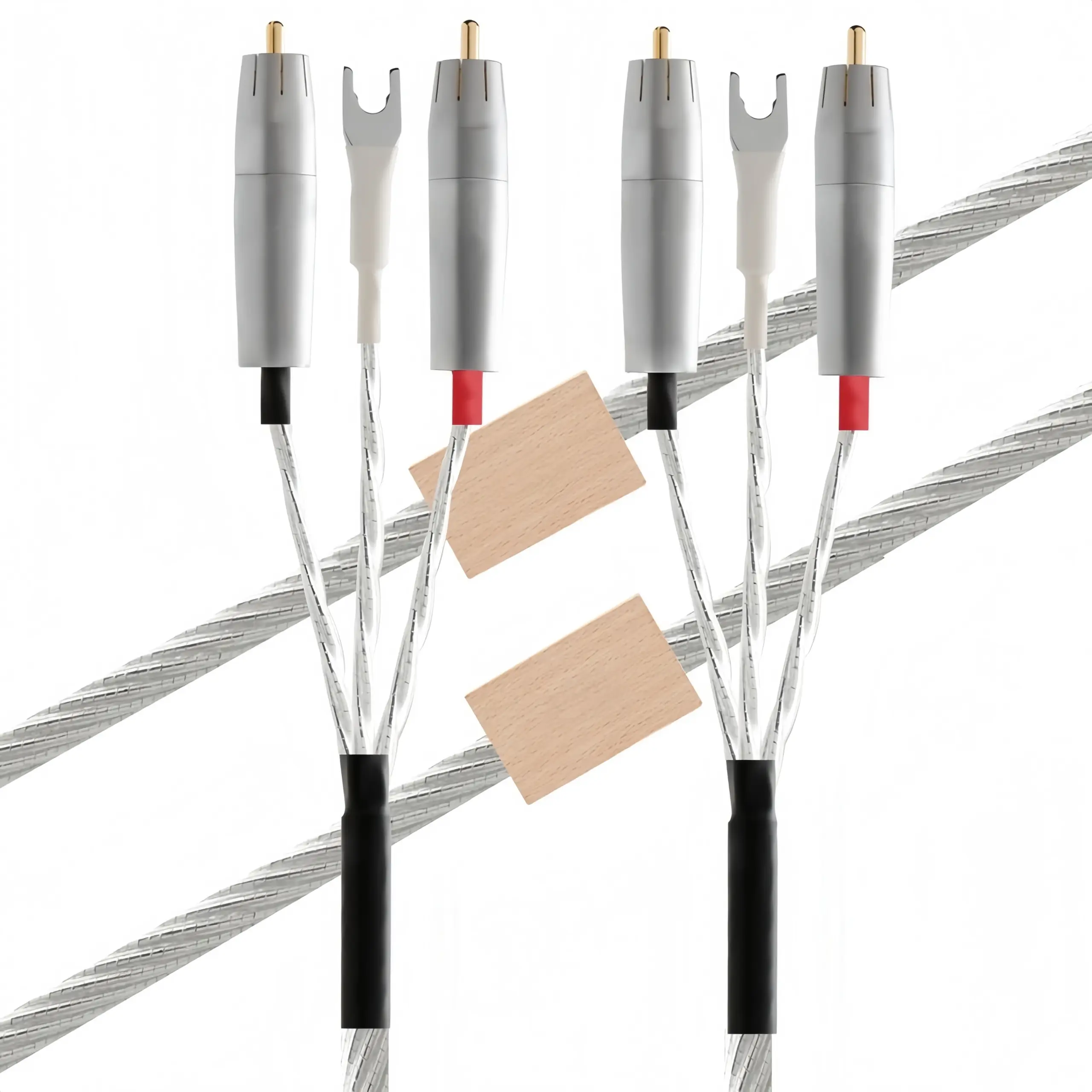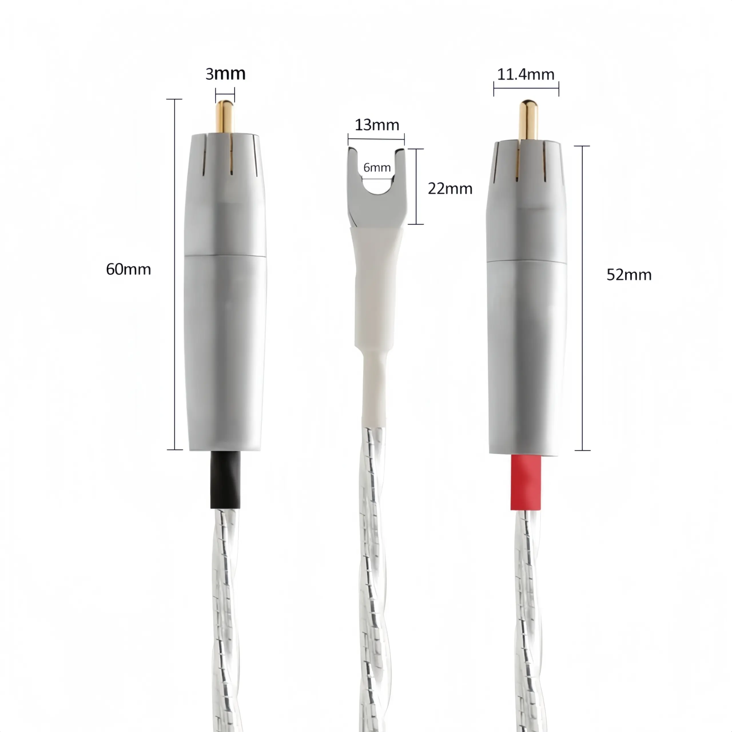 Experience superior high-fidelity audio with this premium RCA tonearm phonograph cable featuring silver-plated conductors with an 8mm diameter, available in 1m, 1.5m, or 2m lengths. Equipped with gold-plated RCA male connectors and a Y ground cable, it ensures optimal signal transfer and reduced noise. Insulated with high-purity 1.003 Teflon (FEP), and with a 9mm outer diameter, the cable offers excellent shielding for enhanced sound clarity. Its sleek, textured finish showcases its high-quality craftsmanship, making it ideal for audiophile vinyl record players, CD amplifiers, and DVD players, delivering pristine sound quality for your high-end audio setup.