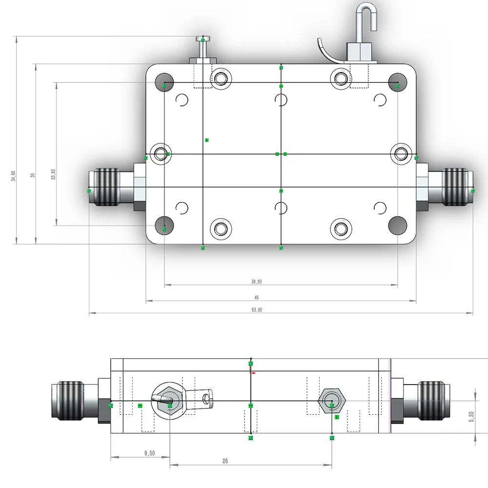 Experience exceptional signal amplification with this high flatness RF amplifier, designed to operate seamlessly between 10 MHz and 6 GHz. Its sleek, metallic silver finish and compact rectangular form make it ideal for integration into sophisticated RF systems such as GPS, BeiDou, radar, and software radio receivers. Engineered for reliability, this module features two models: 50 dB and 60 dB gain, with precise specifications detailed in the measured curves. Its dimensions of 4.5 cm by 3 cm by 1.4 cm and lightweight design of 66 grams ensure easy installation in various high-tech setups. Power is supplied through a stable 5V core capacitor, consuming less than 180mA, making it energy-efficient. The SMA female connector with 50-ohm impedance guarantees secure, high-performance signal transmission, supporting output power below 100 mW, with an P1dB of 18 dBm at 2 GHz. Its minimalist design and mounting hooks facilitate straightforward integration and durable operation, ensuring optimal performance for demanding RF applications.