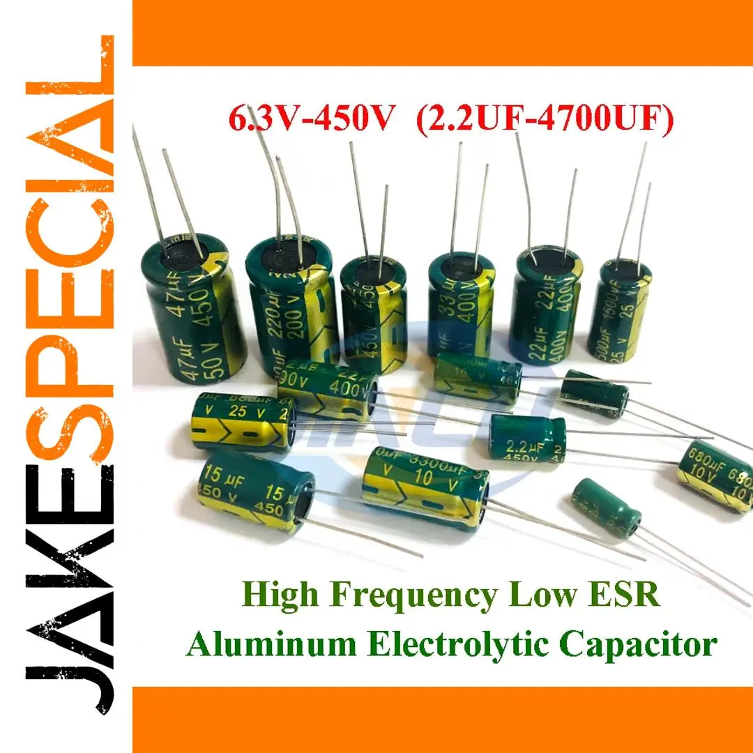 Experience reliable performance with this sleek, green aluminum capacitor designed for a wide range of electronic projects. Its high-frequency, low ESR design ensures excellent stability and efficiency under demanding conditions. With voltage ratings from 6.3V to 400V and capacitance values between 3.3UF and 3300UF, it’s perfect for power filtering, energy storage, or smoothing applications. The through-hole package makes installation straightforward, while its durable construction allows operation at temperatures up to 105°C. This capacitor offers a perfect blend of technical robustness and aesthetic appeal, featuring a glossy green body with clearly printed yellow and black markings for easy identification. Whether in custom circuits or professional repairs, this component delivers consistent, dependable performance.