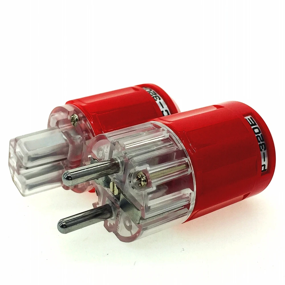 This high-quality rhodium-plated copper EU power plug, available in models P-320E and C-320E, is ideal for DIY HiFi setups. Crafted from 99.9% pure copper with gold plating, it features a durable nylon/fiberglass front body and polycarbonate shell, offering both ruggedness and sleekness. Rated for 10A at 250V or 15A at 125V IEC standards, and 16A at 250V Schuko standards, it supports cables with diameters from 6.5mm to 18mm and wire gauges up to AWG 10 (5.5 sq. mm). Measuring 72mm in length and 38mm in diameter, this pair of plugs combines technical precision with modern aesthetics, making it a reliable choice for professional audio and high-end power connections.
