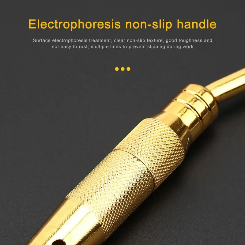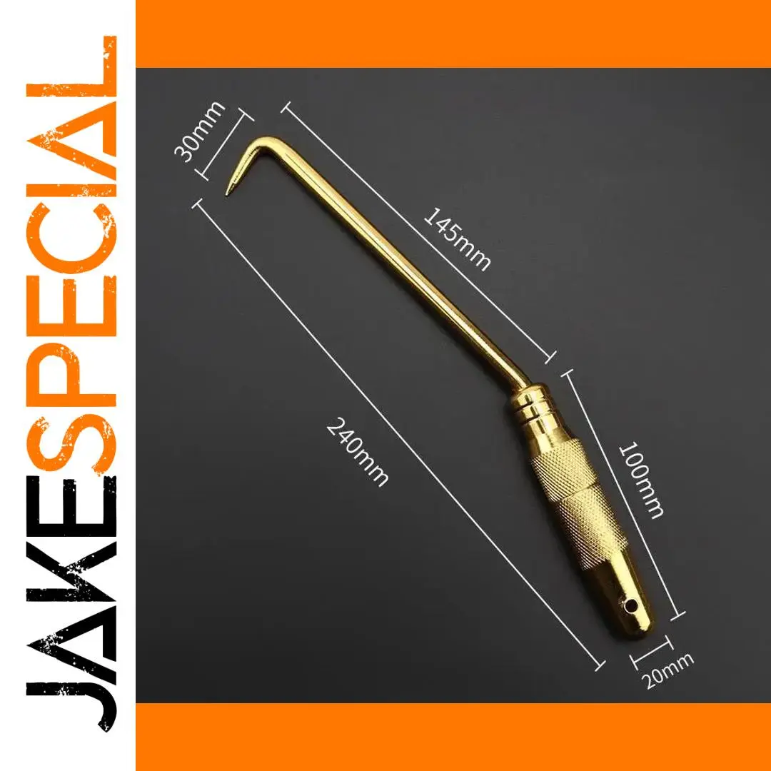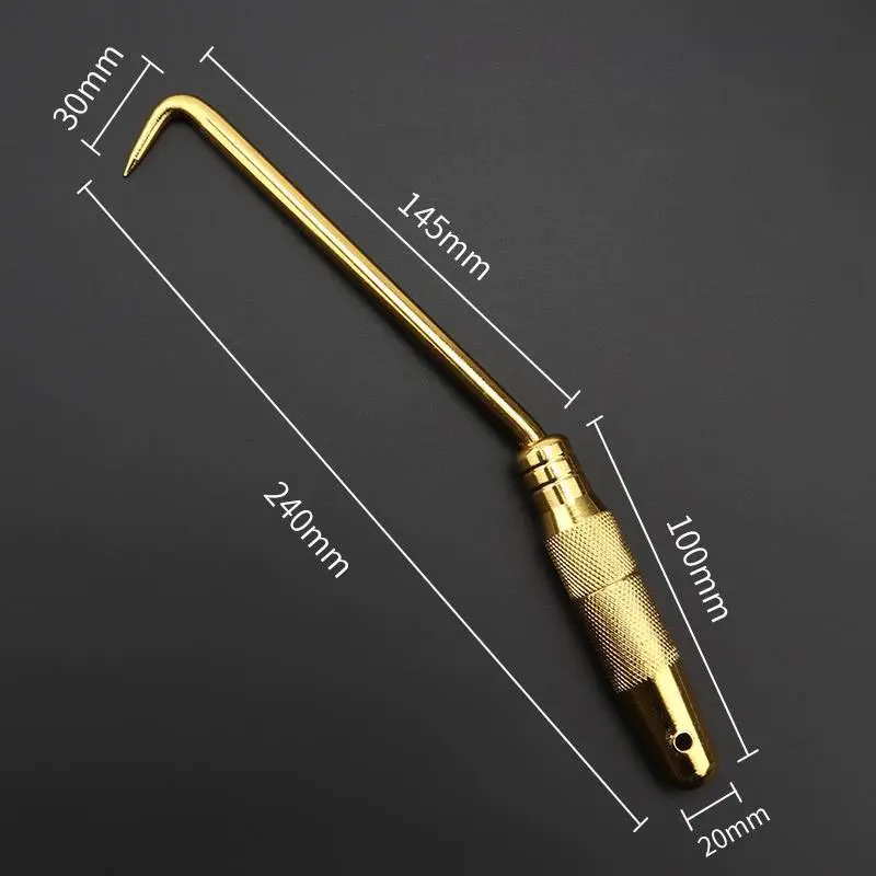 Experience the reliability and efficiency of this high-quality rebar tie hook, expertly crafted for professional reinforcement work. Made from high-hardness steel, it boasts a polished, shiny gold finish that reflects both durability and strength. The curved, pointed hook, measuring approximately 30mm, is designed for secure gripping around steel bars, while the sleek, straight shaft provides ease of twisting and rotation. Its textured knurled handle offers a secure grip, ensuring comfort during prolonged use. Available in various sizes from 24cm to 28cm, this tool integrates seamlessly into your construction tasks. Its semi-automatic wire twister feature enhances productivity and precision, making it ideal for professionals focused on quality and efficiency in architecture reinforcement projects.