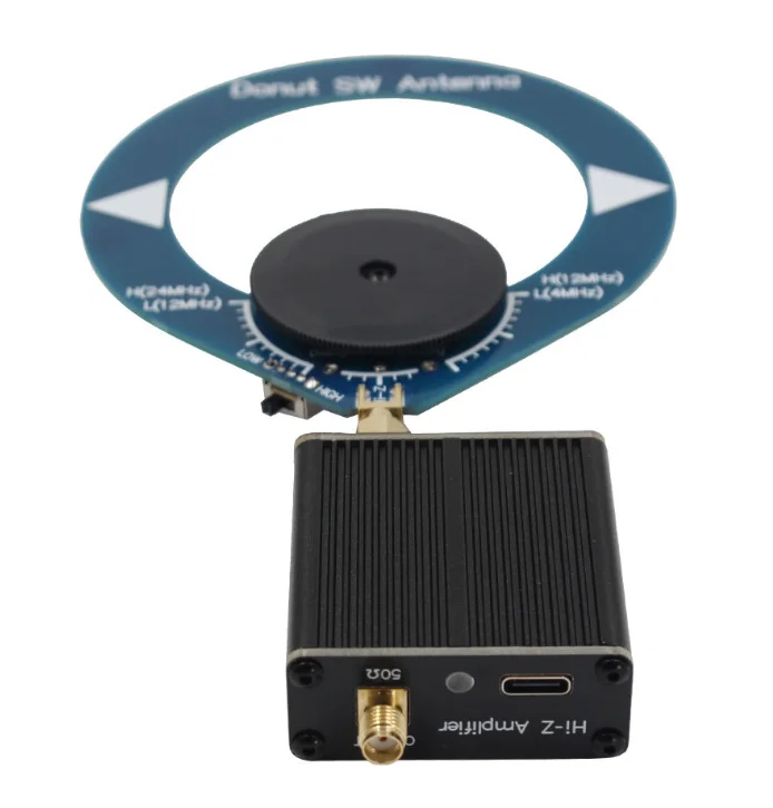 Enhance your radio reception with this compact high impedance amplifier measuring 50x45x18mm, featuring an input impedance of 1 MΩ, output impedance of 50 Ω, and a bandwidth of up to 300 MHz. Powered by a built-in 600mAh battery supporting over 24 hours of operation at a charging voltage of 5V, it includes a donut shortwave antenna and a donut medium wave antenna for optimal connectivity. Designed for LC resonant antennas such as donut, magnetic rod, and whip antennas, it offers high energy capture, improved signal strength, and superior performance for radio receivers, SDR devices, and walkie-talkies, ensuring clear, reliable reception in demanding conditions.