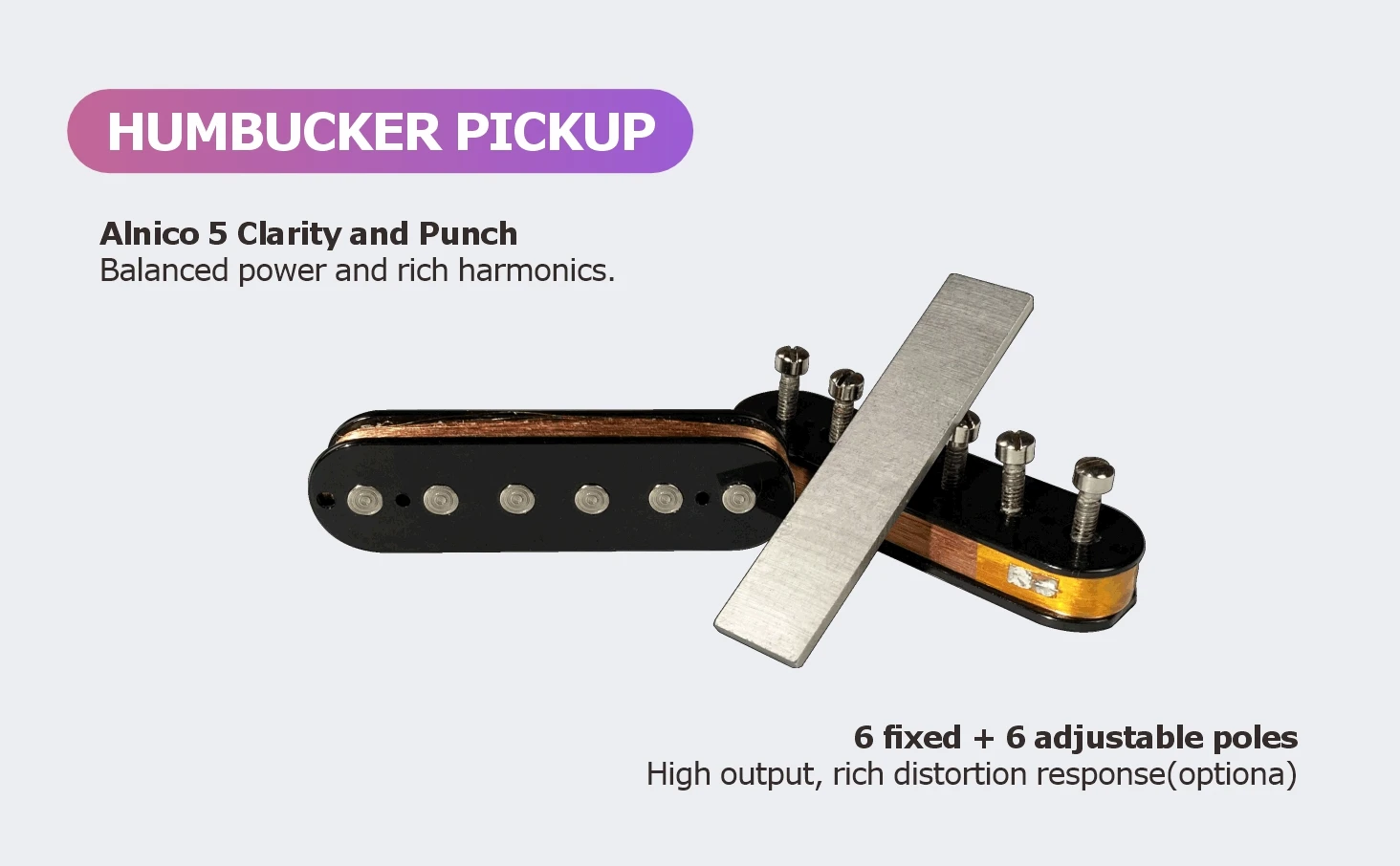 - Features Alnico 5 magnets, 6 non-adjustable slug pole pieces, and 6 adjustable screw pole pieces for versatile tonal shaping and dynamic response.