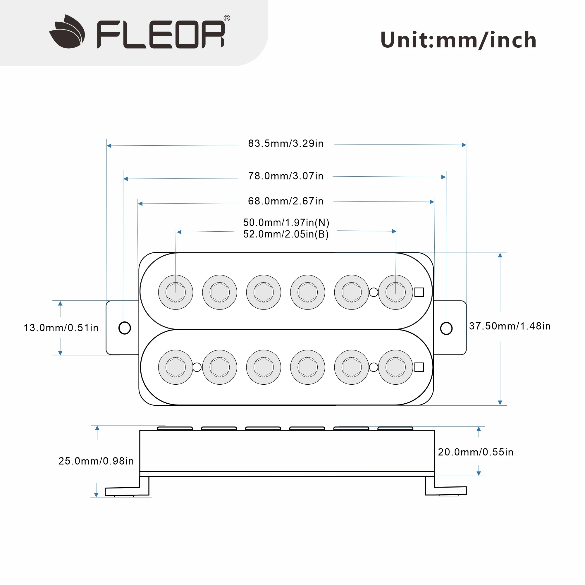 - Big hex adjustable screw pole pieces spaced at 50mm for the neck and 52mm for the bridge, allowing fine-tuned magnetic field adjustments.