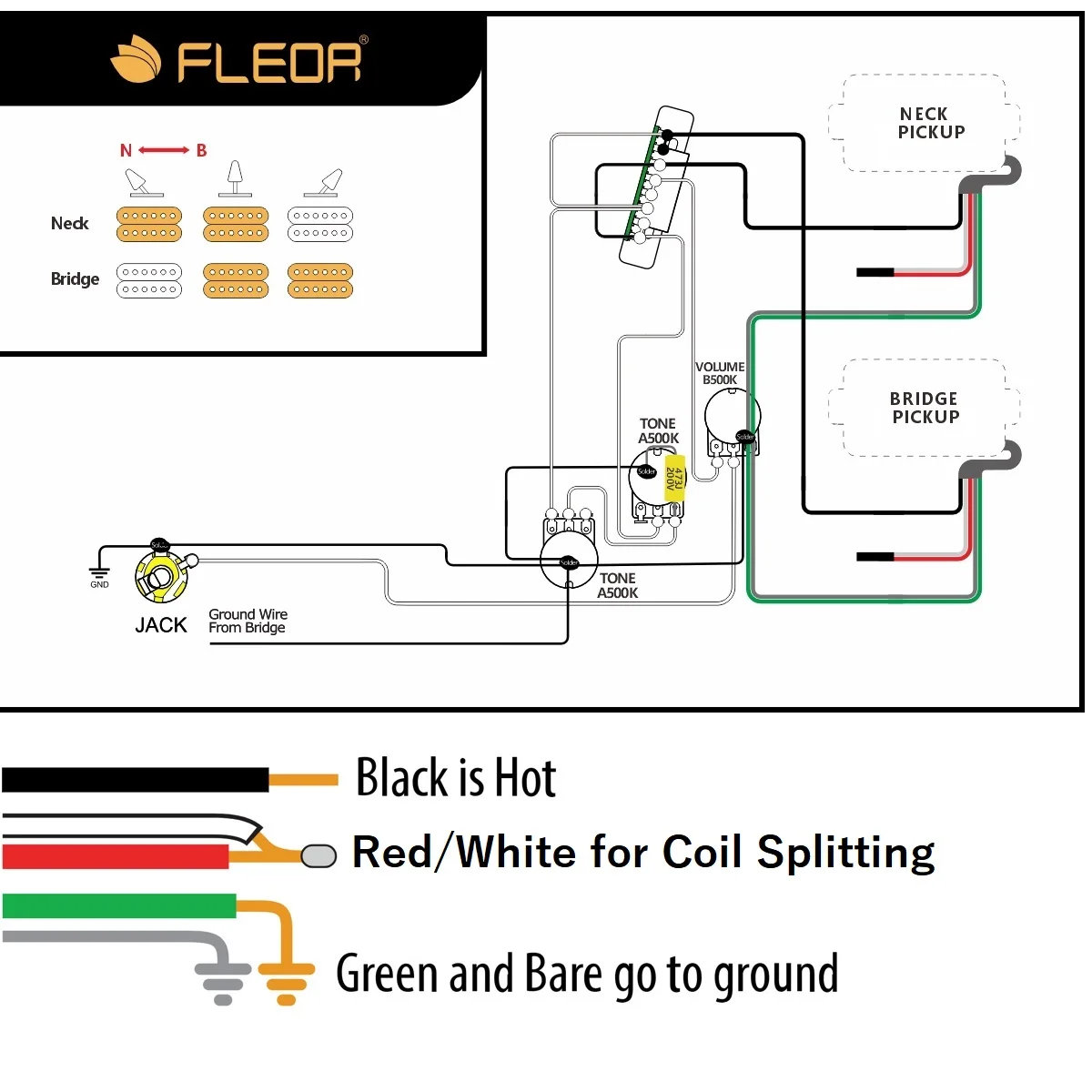 - Configured with 4 wires: black for hot, green and bare for ground, white and red for coil splitting, supporting versatile tonal options.