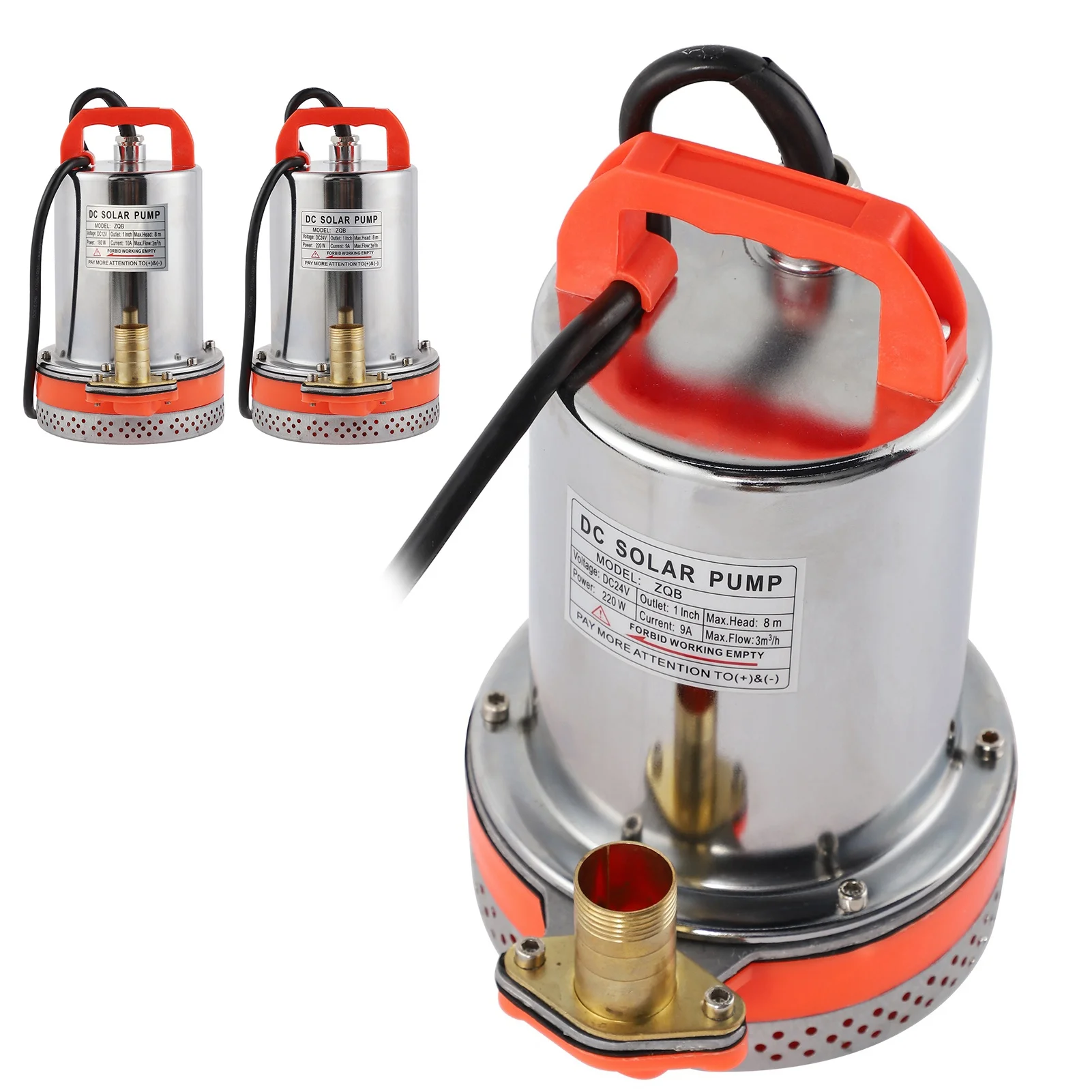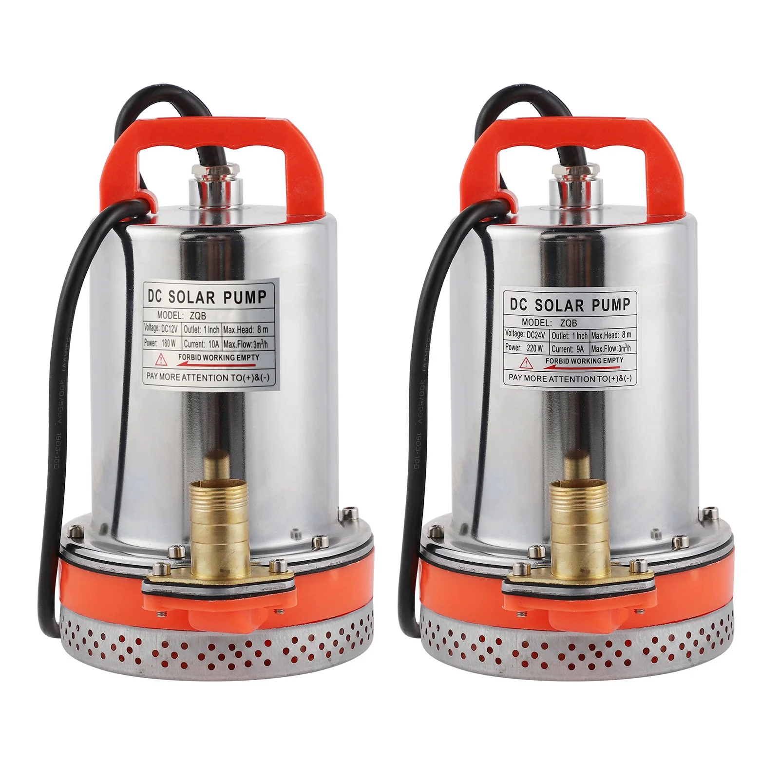 This durable, metallic cylindrical submersible pump features a sleek, shiny silver finish with electroplating treatment for corrosion resistance and long-lasting performance. Equipped with a powerful copper motor, it operates efficiently at 12V (180W) or 24V (220W), with a maximum flow rate of 3000 liters per hour and a lift height of up to 8 meters. The pump includes a 1-inch (25mm) outlet, a 2.5cm water inlet, and a 2.1-meter cable, making it suitable for water tanks, ponds, waterfalls, swimming pools, and ship drainage. Its robust build ensures reliable operation in environments with temperatures up to 40°C, ideal for solar or battery-powered water management tasks.