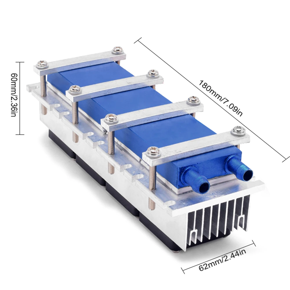 Experience effortless cooling with this sleek, high-performance thermoelectric cooler designed for small area applications. Crafted with a sturdy aluminum body, it combines modern industrial aesthetics with durability. The vibrant blue ceramic or polymer top panel offers a striking contrast to the metallic finish, making it both functional and visually appealing. Silver brackets and bolts subtly emphasize its technical sophistication, while the neatly organized wiring ensures ease of connection. The black heatsink with vertical fins at its base maximizes heat dissipation, supporting efficient operation. Whether you're working on cooling projects, dehumidification, or pet bed cooling, this compact, ready-to-use system delivers reliable, rapid cooling. It's perfect for DIY enthusiasts seeking a high-quality cooling solution that merges style with performance.