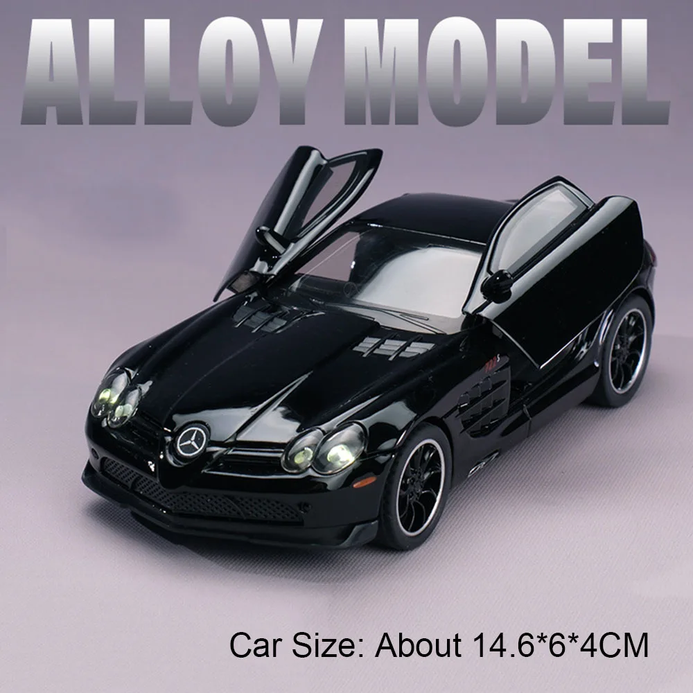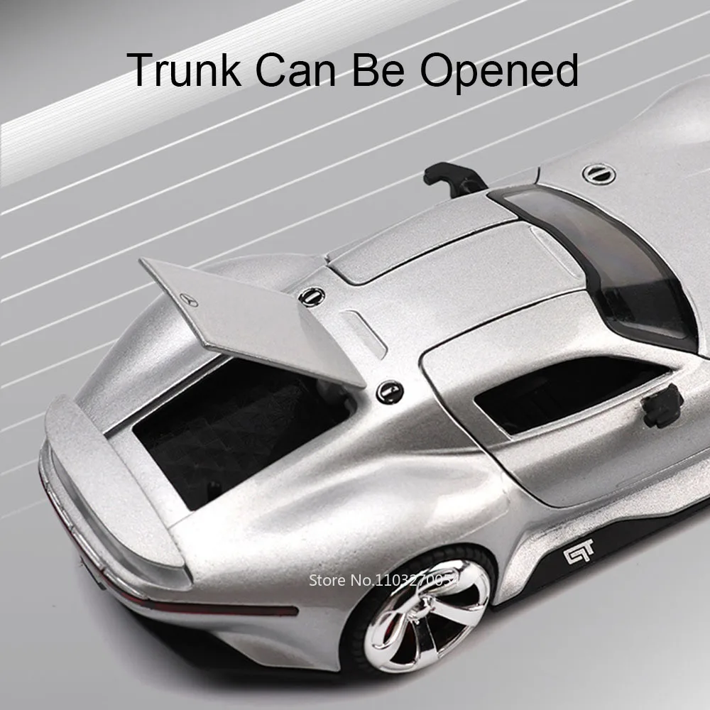 Step into the world of high-performance vehicles with this stunning 1:32 scale diecast alloy model, featuring a sleek, metallic silver finish that captures the essence of luxury and speed. Crafted with a durable metal body, plastic chassis, and rubber tires, this miniature embodies meticulous attention to detail. Its aerodynamic shape, sculpted side panels, and polished surface create a striking visual impression of a modern racing car. The model’s grille, headlights, and wheels are crafted with fine precision, offering a realistic and collectible feel. With functional doors that open, pull-back movement, and built-in lights and sound, it makes an immersive experience for car enthusiasts or a standout piece in your collection. Its compact size makes it perfect as a gift or display piece for adults and collectors alike.