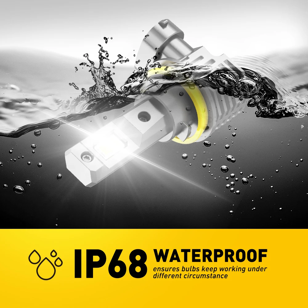 Experience enhanced visibility with these sleek, metallic silver LED headlight bulbs, operating at 12-18V DC with 50W per pair and emitting 16,000 lumens of bright white light at 6500K. Featuring durable 7035 CSP LED chips, they offer a lifespan of approximately 50,000 hours, with no fan noise and IP68 waterproof design for reliability in any weather. Designed for compatibility with sockets HB4/9006, HB3/9005, H11/H8/H9/H16 (JP), these bulbs provide 360-degree illumination without dark spots, ensuring optimal lighting performance. Their almost exact size match with halogen bulbs, combined with a plug-and-play installation, makes upgrading your vehicle’s lighting both straightforward and efficient.