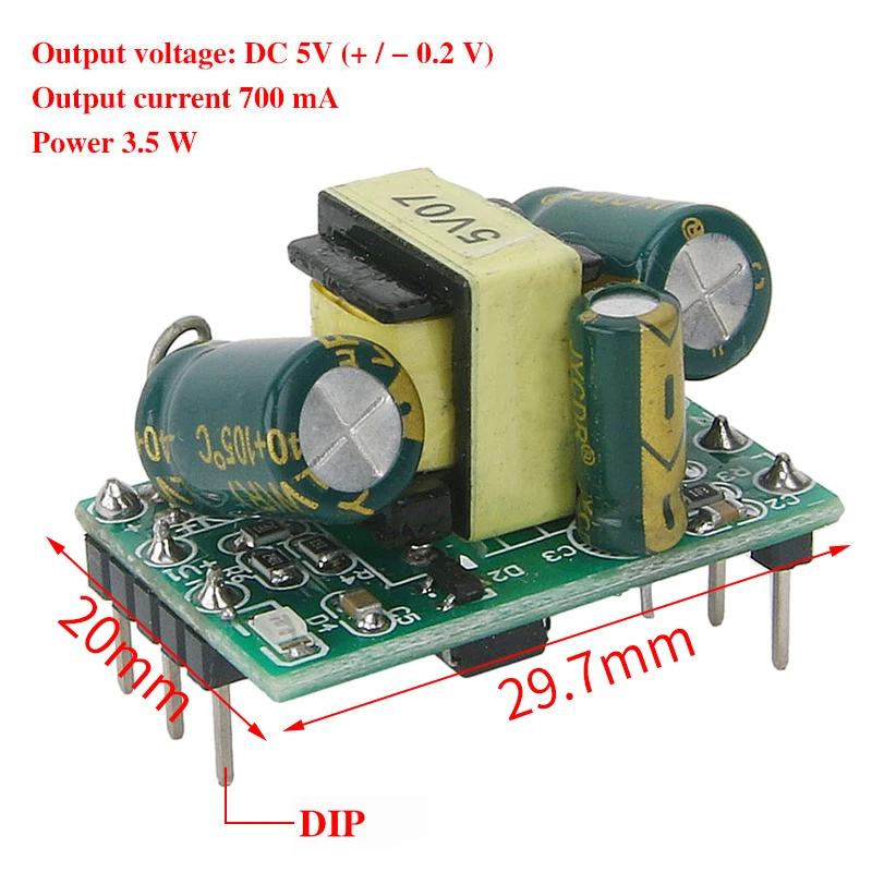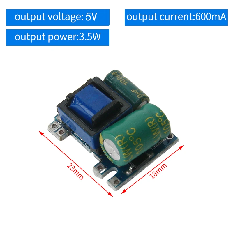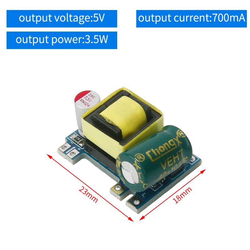 Experience reliable power conversion with this high-quality AC-DC buck converter module designed for adult electronics enthusiasts and engineers. This compact, rectangular module offers multiple output voltage options, including 3.3V, 5V, and 12V, supporting a maximum output current of up to 5A and power output of 50W. Its isolated switch design ensures stable and safe operation across various applications such as DIY projects, industrial equipment, or precision power supplies. The green PCB background with vibrant yellow transformers and metallic capacitors provides a professional, utilitarian aesthetic reflecting its high engineering standards. With neatly soldered joints and mounting holes, this module guarantees dependable performance and easy integration. Elevate your power solutions today and harness precision and versatility in your circuitry projects.