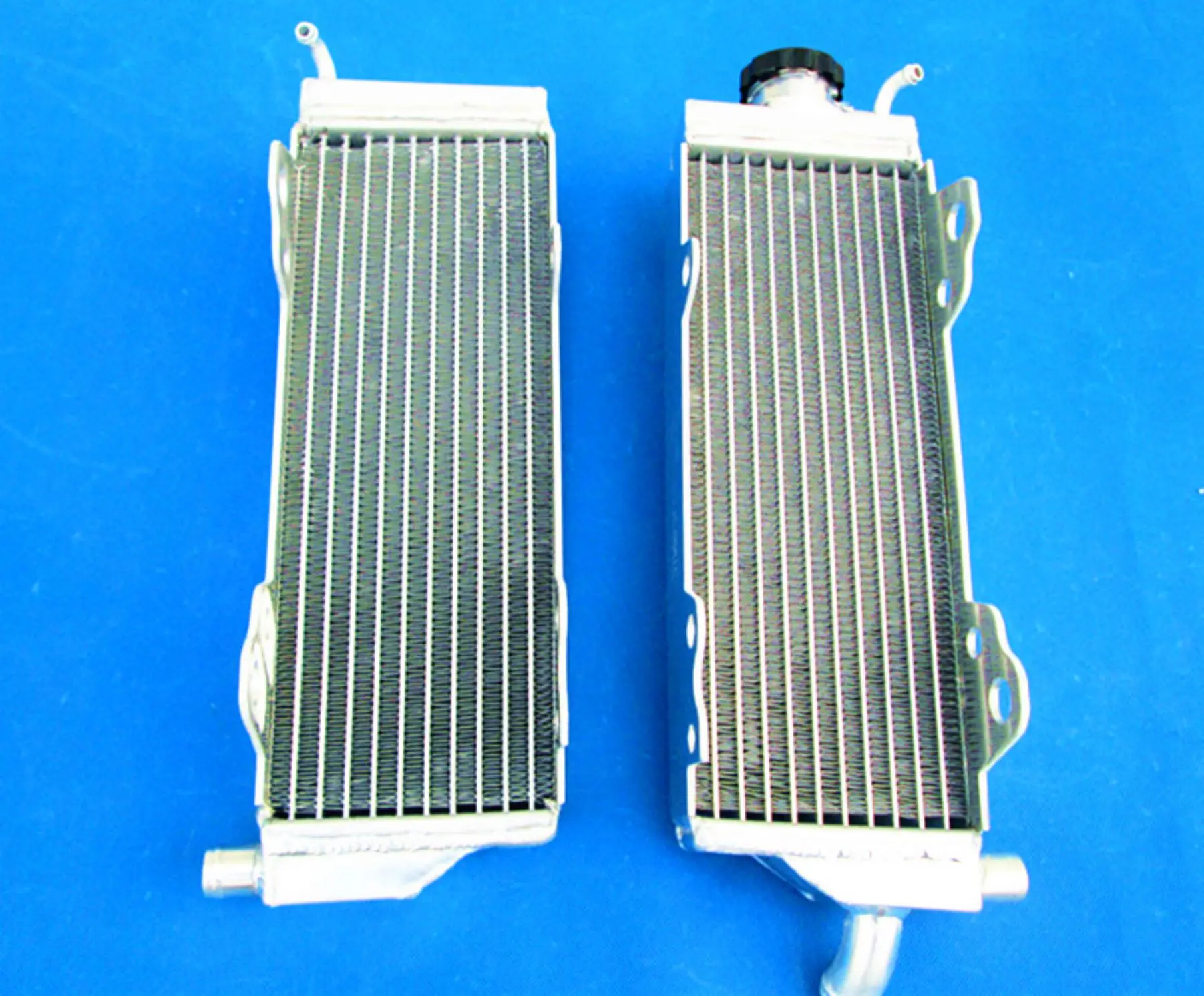 Enhance your 1990-2001 Honda CR500 with this heavy-duty aluminum radiator set, crafted from forged T-6061 aluminum for both core and tanks. Featuring vacuum-brazed welded core and TIG-welded tanks for superior durability without epoxy, these radiators boost cooling capacity by approximately 40% compared to standard models. Designed for a precise fit, they include a left and right radiator, ensuring easy installation with minimal modifications. Built to exceed OEM standards, this brand-new set offers reliable heat dissipation, improved performance, and a one-year warranty against manufacturing defects, making it the ideal upgrade for serious enthusiasts seeking enhanced cooling efficiency and durability.